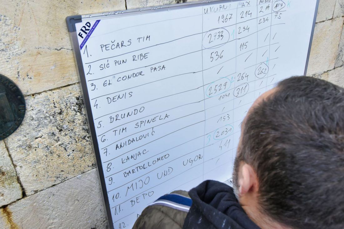 Najuspješnija u ekipnoj konkurenciji bila je ekipa „Sić pun ribe“ (D.Žuljević, D.Mlinac i F.Mlinac) sa 2733 gr ulova, zatim „Brundo“ (G.Bogdanović) sa 2529 gr i na trećem mjestu „Bartolomej“ (V.Vladislavić i B.Lukšić) sa 2031 gr. Nagradu za najveću ribu natjecanja, pagra od 311 gr osvojila je ekipa „Tim spinela“ (J.Lukšić i N.Lukšić), najvećeg kanjca od 117 gr imala je ekipa „Pećar’s“ (P.Pećar i I.Pećar) a najvećeg arbuna od 262 gr ekipa „Brundo“ (G.Bogdanović).