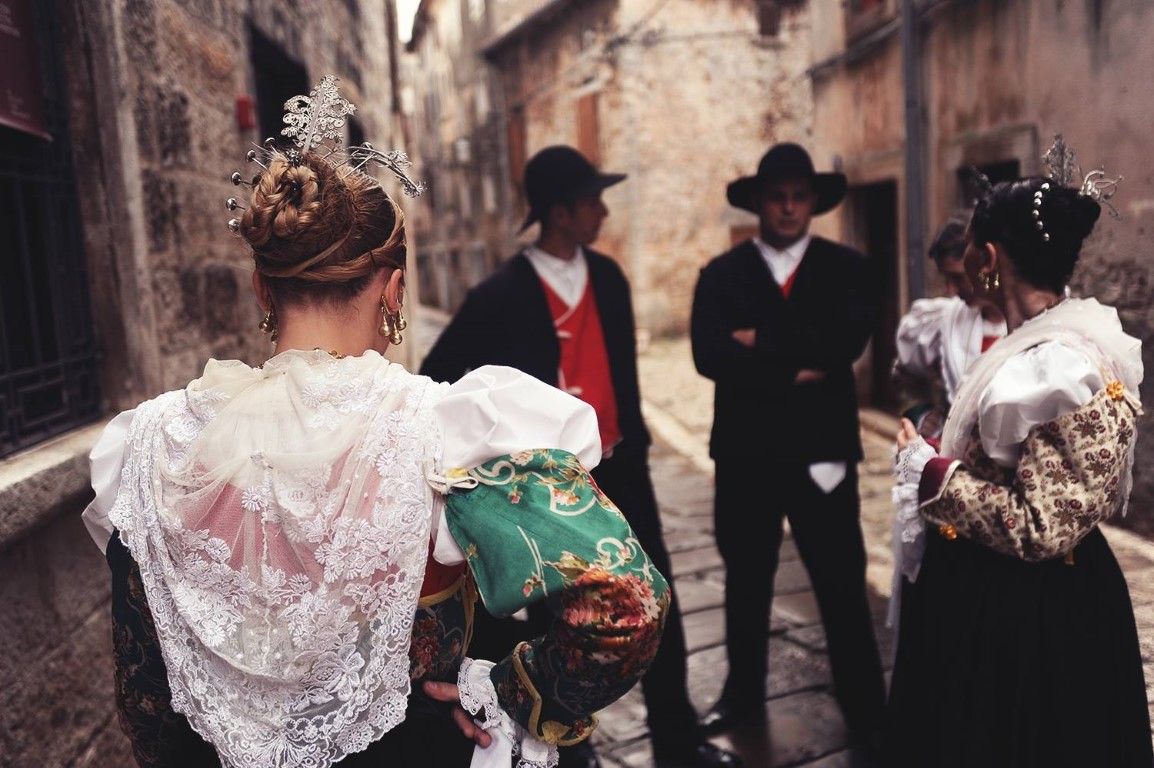 Za blagdane, sa svojim vrlo elegantnim frizurama nisu nimalo zaostajale za Vodnjankama. Napravljene pletenice skupljale su se na potiljku u punđu (cogon), a pramenovi na prednjoj strani češljali su se na prednjoj strani valovito (cape). Valoviti dijelovi frizure učvršćivali su se sa zašećerenom vodom ili sapunom za rublje. Punđa se ukrašavala iglenim ukosnicama. La spada (srebrna igla u obliku drške mača) imala je središnji položaj, a na nesimetričan način s obje strane su se umetale le cioche (igle s filigranskim ukrasom), i trèmoli (igle sa spiralnim tijelom i glavom u obliku cvijeta koje su se njihale u pokretu) te i ciodi (srebrne igle s plosnatom glavom).