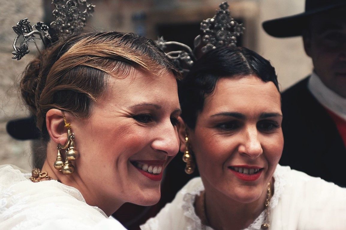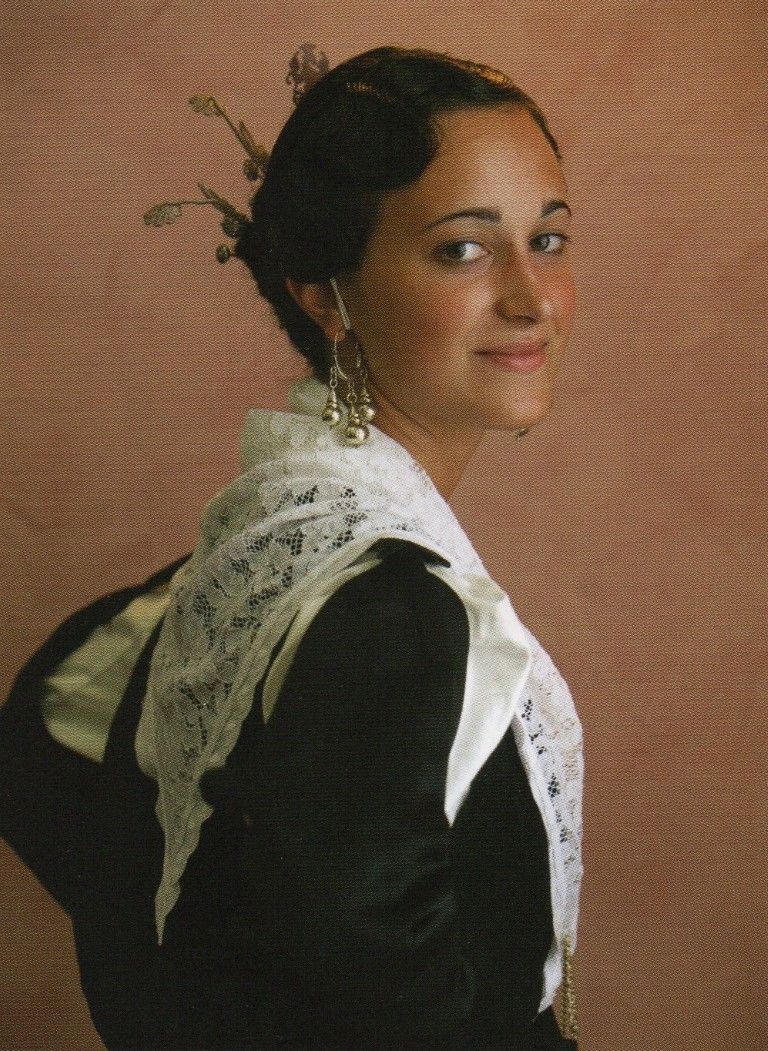 Svečanu žensku nošnju sačinjavali su: braghise (bijele gaće od lana ili konopolje ukrašene čipkom), cameisa (košulja s čipkom oko vrata i na zapešćima s valovitim i veoma širokim rukavima), camisulein odnosno bustein (prsluk od štofa ili platna jarko crvene boje širokih naramenica), carpita (podsuknja od bijelog, zelenog ili crvenog platna ukrašena preklopima, čipkama i vezovima), brasarola (šareni i ukrašeni prsluk od satena ili brokata), soca (teška crna gusto nabrana suknja ukrašena srebrnom čipkom i crvenim koncem), manighe (šareni i ukrašeni rukavi od satena ili brokata koji se vežu za zadnji dio crvenog prsluka), traversa (pregača od svile ili prošaranog damasta), sintoura (šareni remen od platna ili kože ukrašen srebrnim kopčama, velo (nježan bijeli šal od tila prekrižen na prsima), tovajol (bijeli rubac za glavu), fasulito de fianco (veliki bijeli izvezeni rubac od lana kutom prikačen iznad pregače), fasulito de man (izvezen ili čipkani rupčić koji se drži na dlanu kutom pričvršćen uz prstenje), calse (čarape od bijelog konca ili vune) i scarpite (crne cipele od glatke kože).