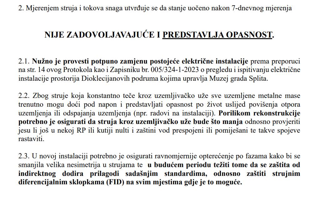 Od početka rujna radimo ispitivanja i elaborate radi utvrđivanja stanja i poduzimanja daljnjih mjera rekonstrukcije mreže elektroinstalacija. Isto radimo u suradnji s relevantnim stručnjacima, inspekcijskim nadzorom i nadležnim Konzervatorskim odjelom.