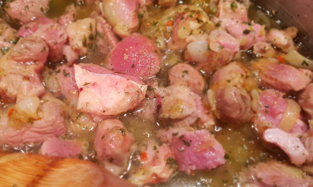 Nasjeckanu janjetinu na kocke dodati i okreniti na šugu par minuta da se zatvore pore.