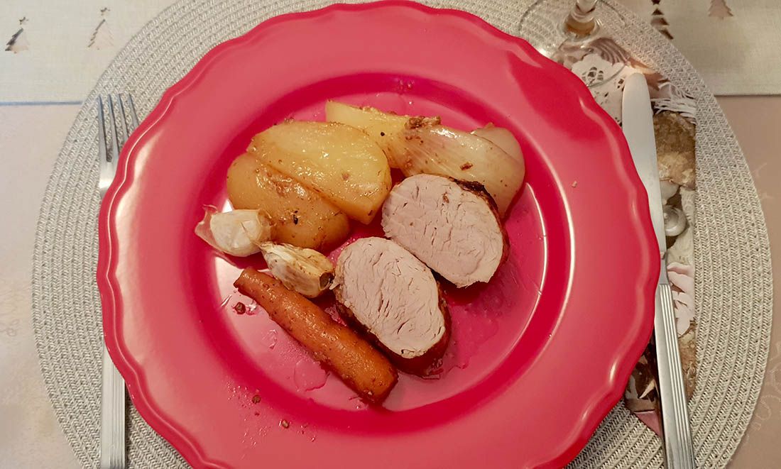 Tako sam se i ja nasla u mukama ugoditi svima za trpezom. Željela sam nešto slasno a da mi ne oduzme cijelo jutro u kuhiniji. Kocka je pala na pečeni svinjski umbuo iz marinade.