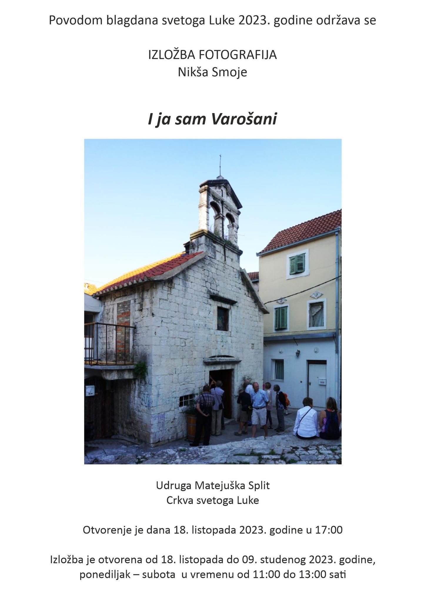 Povodm blagdna sv. Luke u istoimenoj crkvicu u Varošu otvorena je izložba fotografija Nikše Smoje “I ja sam Varošani”.