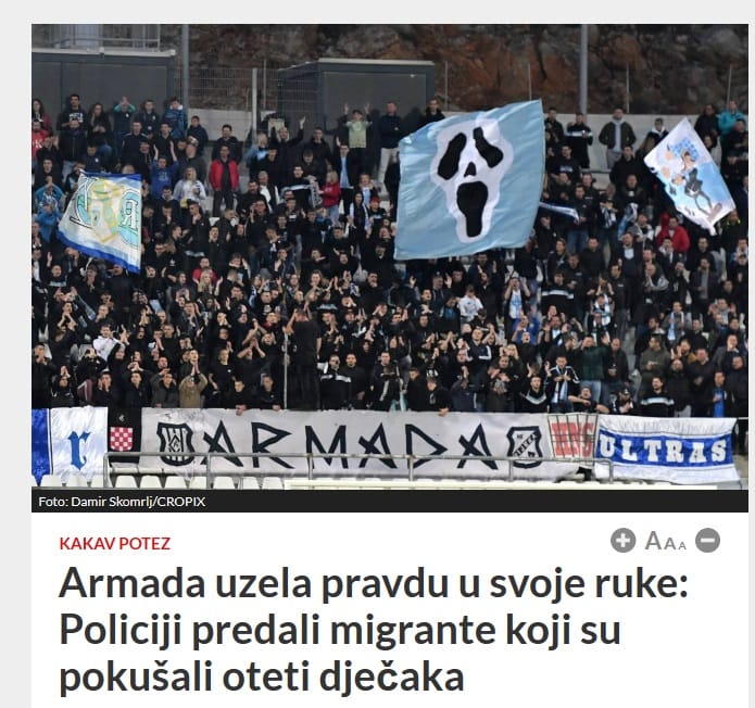 Proteklih se dana na društvenim mrežama i u medijima pojavila objava o navodnom pokušaju otmice djeteta na području Čavli od strane ilegalnih migranata. Najopasnije u cijeloj priči je da su pojedini mediji nonšalantno prenijeli potpuno neprivjerenu informaciju o tome da su "navijači Armade odradili posao umjesto policije: Uhvatili počinitelje koji su pokušali oteti 15-godišnjeg dječaka".