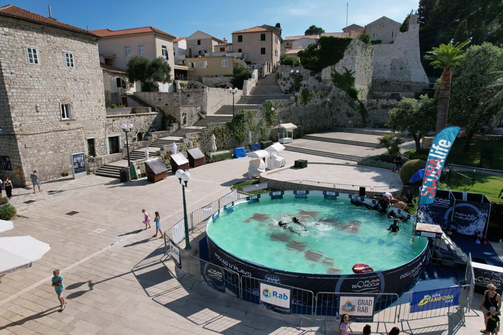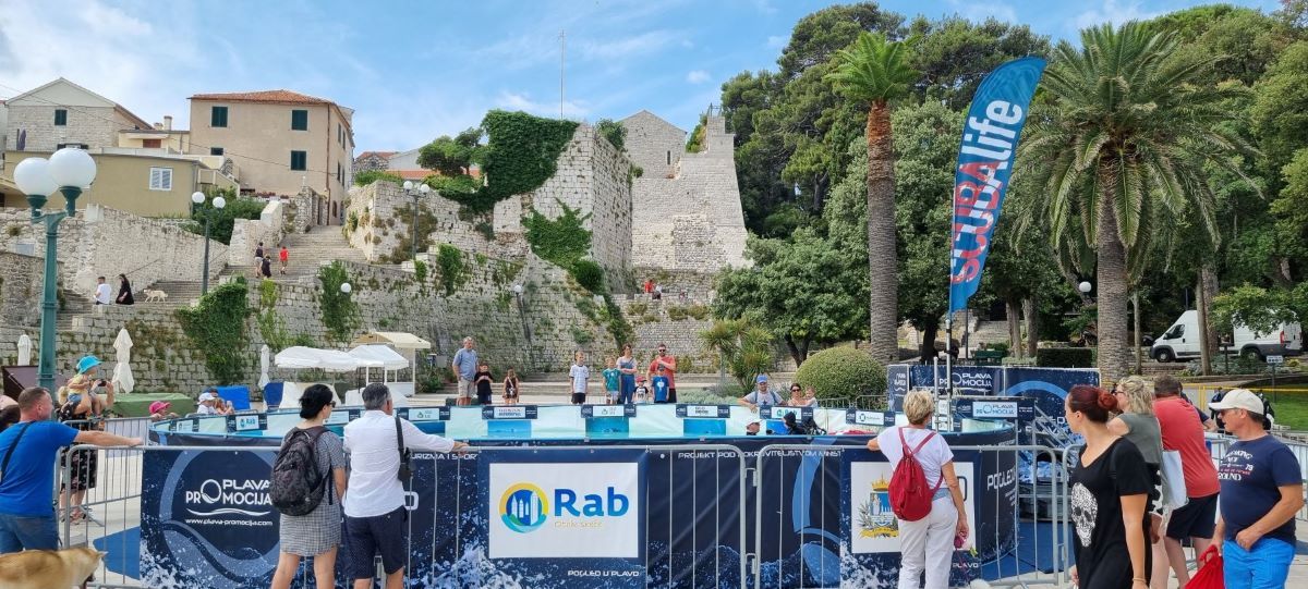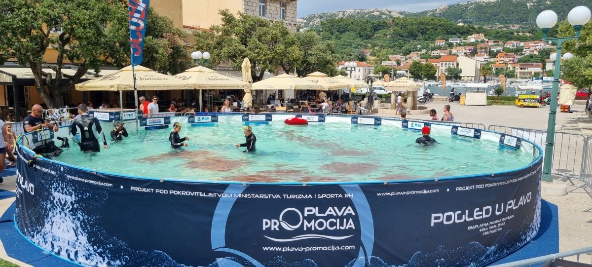 Na Trgu Sv. Kristofora tijekom vikenda bio je montiran 10 metarski montažni bazen Pogleda u plavo, a svi posjetitelji grada Raba imali su jedinstvenu priliku okušati se u ronjenju u potpuno kontroliranim i sigurnim uvjetima, s punom ronilačkom opremom uz stručno vodstvo instruktora ronjenja.