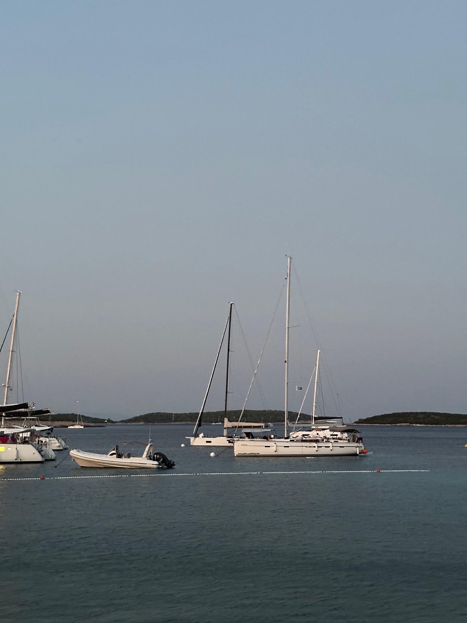 - Najednom mi prilazi sredjevječni muškarac s gumenjakom, i objašnjava da trebam doći na večeru u njihov restoran ako želim ostati noćiti, privezan na plutači. Objašnjavam mu da tu večer ne planiram izlaziti van, bio sam jako umoran nakon cijelog dana plovidbe. Na to mi on kaže da ima poziv za grupu od 6 ljudi koji bi tu došli brodom večerati i ako neću jesti, da se premjestim na sidrište na susjedni otok koji je, usput, bio izložen valovima cijelu noć (lokacija ne vrijedi ništa).