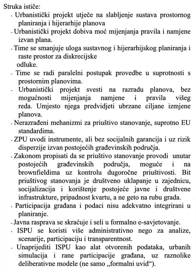 Marginalizacija struke: Arhitekti i urbanisti upozoravaju da je zakon donesen bez uvažavanja njihovih primjedbi (podneseno je preko 1700 primjedbi struke), što može dovesti do trajne devastacije prostora.