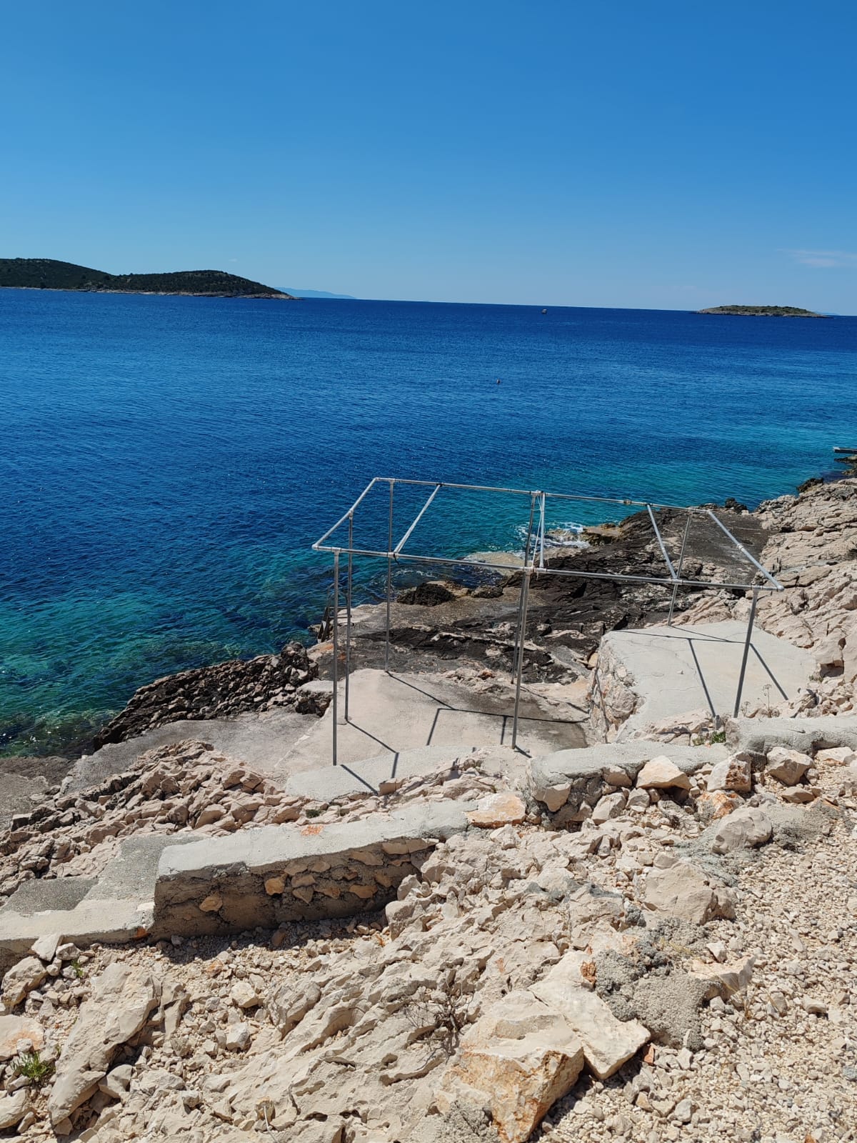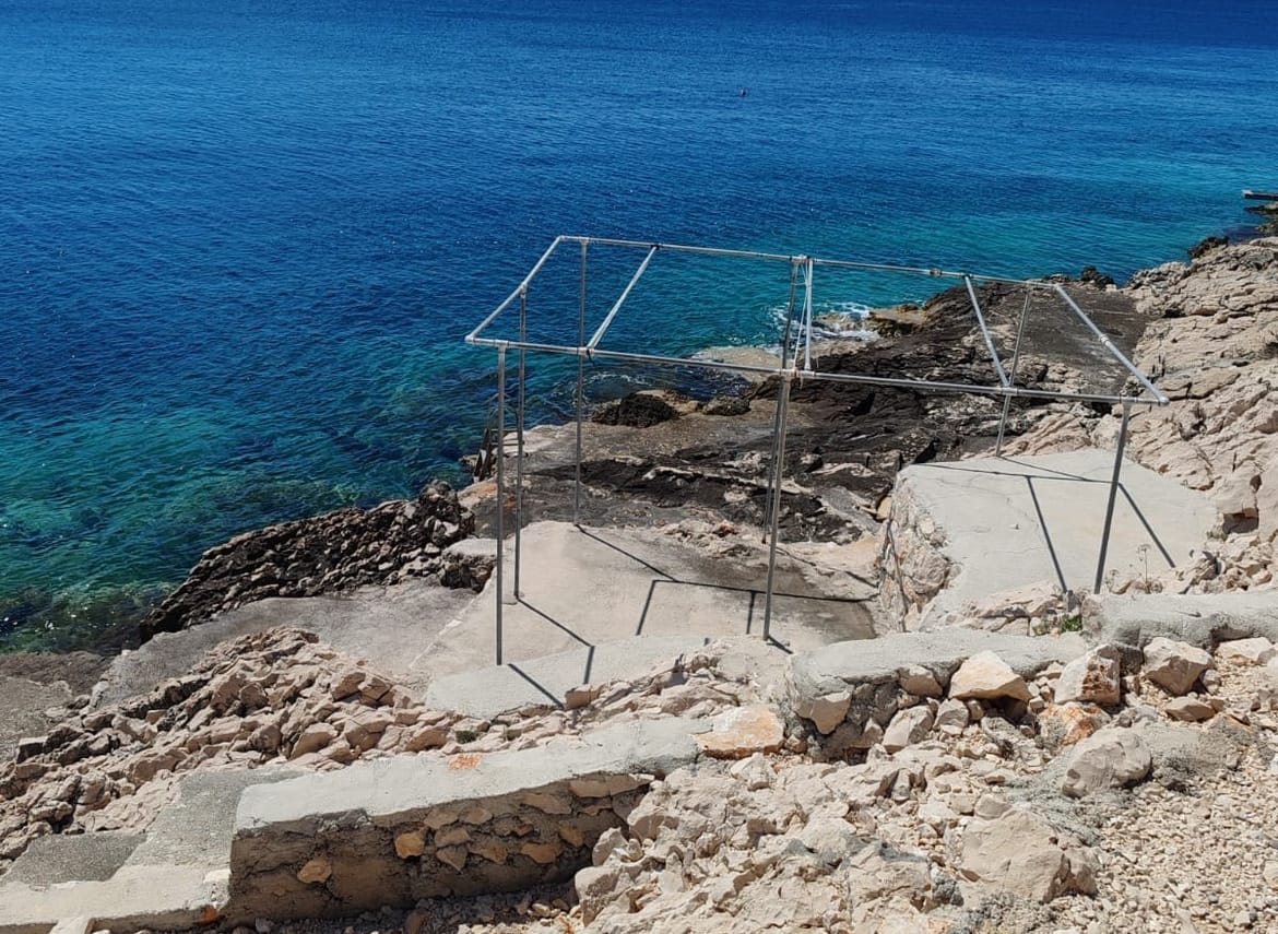 Nije dovoljno da su betonirali obalu, već u beton uvaljuju i ovakve konstrukcije, koje će, pretpostavljamo, poslužiti kad sunce upekne ovaj beton, pa da bi se navukla kakva nadstrešnica za turiste željne hlada.