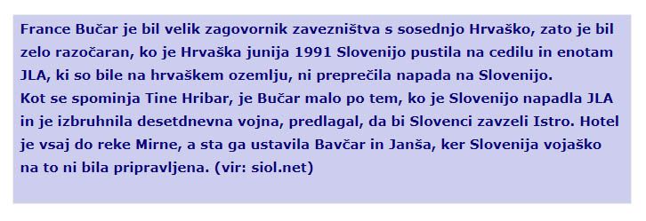 Časnik piše kako je, prema sjećanju Tine Hribara, Bučar nedugo nakon napada JNA i početka desetodnevnog rata predlagao da Slovenija zauzme Istru, sve do rijeke Mirne, ali su ga u tome zaustavili tadašnji ministar obrane Janez Janša i Igor Bavčar koji je u to vrijeme bio ministar unutarnjih poslova. Inače Bučar je znao govoriti da Istra nikada u povijesti nije bila “dio hrvatskog teritorija”, prenosi Net.hr.