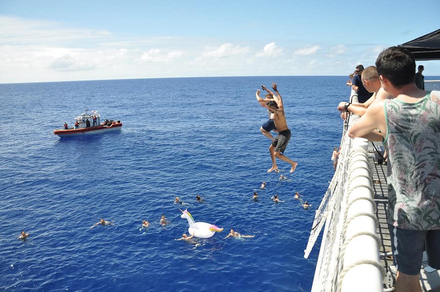 Posada broda američke obalne straže malo je predoslovno shvatila „slobodno poslijepodne“, pa su zaobišli sigurnosne protokole da bi se osvježili u Pacifiku. Nekolicina njih se opustila okupavši se u moru, a pritom su doživjeli, kako i sami priznaju, jedan od najnevjerojatnijih događaja u životu.