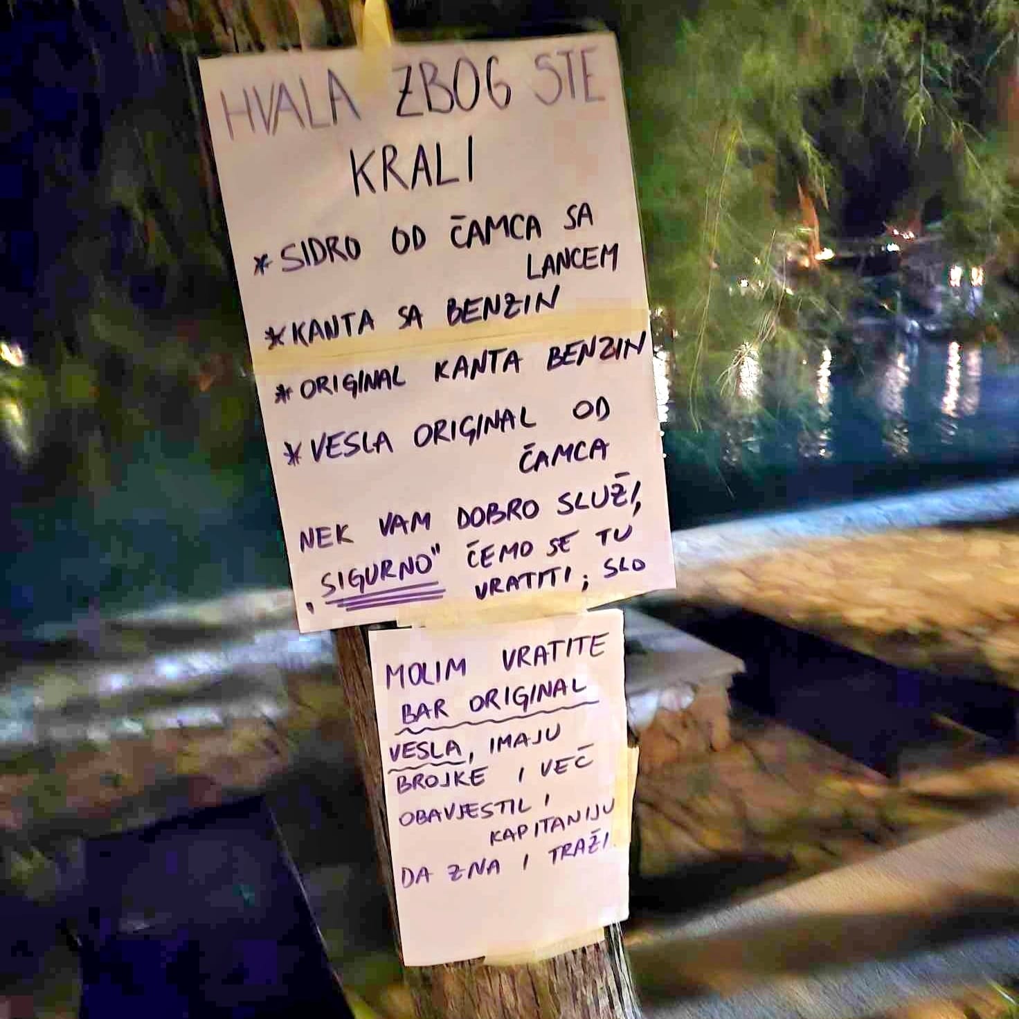 Nek vam dobro služi, sigurno čemo se tu vratiti. Molim vratite bar original vesla, imaju brojke i već smo obavijestili Kapetaniju - piše u poruci ogorčenih turista.