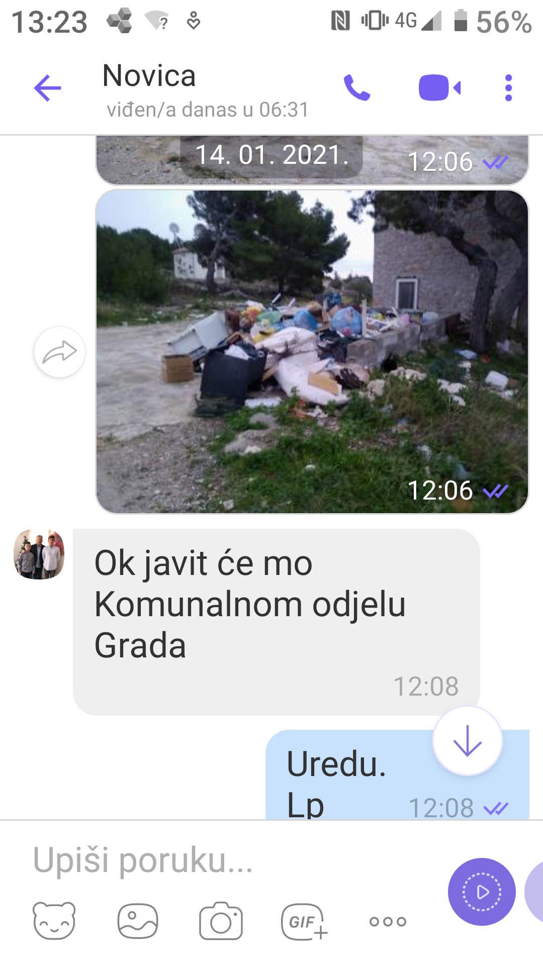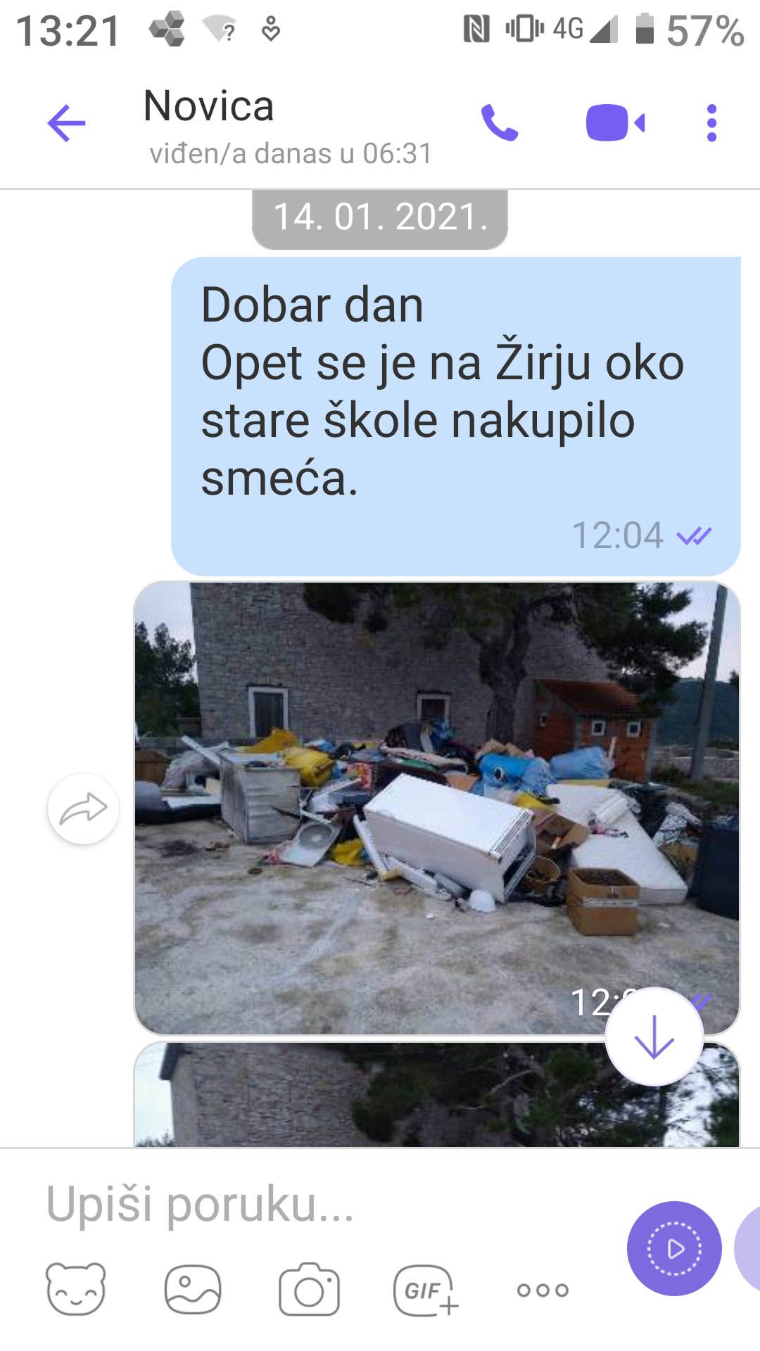 – Nije baš tako kako oni kažu. Zeleni grad je što se tiče krupnog otpada treba odvoziti jedan put mjesečno. Ljubičiću su poslane slike i rečeno je da treba djelovati. On je rekao da to preuzima komunalno redarstvo u Gradu Šibeniku koje na teren šalje Zeleni grad. Ja sam nekoliko puta slao slike i poruke kao dokaz nadzornim službama u gradu. Odgovoreno mi je nakon što je 2-3 mjeseca tamo stao krupni otpad, da će doći u redovnom postupku kad dolaze po otpad. Međutim, vrijeme se rasteglo od jednog na 2-3 mjeseca. Ja poruke imam, nisam ih brisao. MO je garantirano odradio svoju dužnost, ne 100, već 150 posto! Imali smo i vlastiti kontejner kojeg su oni jednostavno skupili i odveli kao da je njihov i njega više na otoku nema – kazao je Berbić i šalje nam, kako kaže, samo djelić svoje komunikacije s odgovornima.