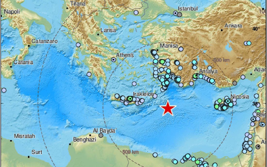Epicentar je bio na dubini od 60 kilometara, oko 140 kilometara od grčkog otoka Karpathosa, istočno od Krete i južno od obale Turske