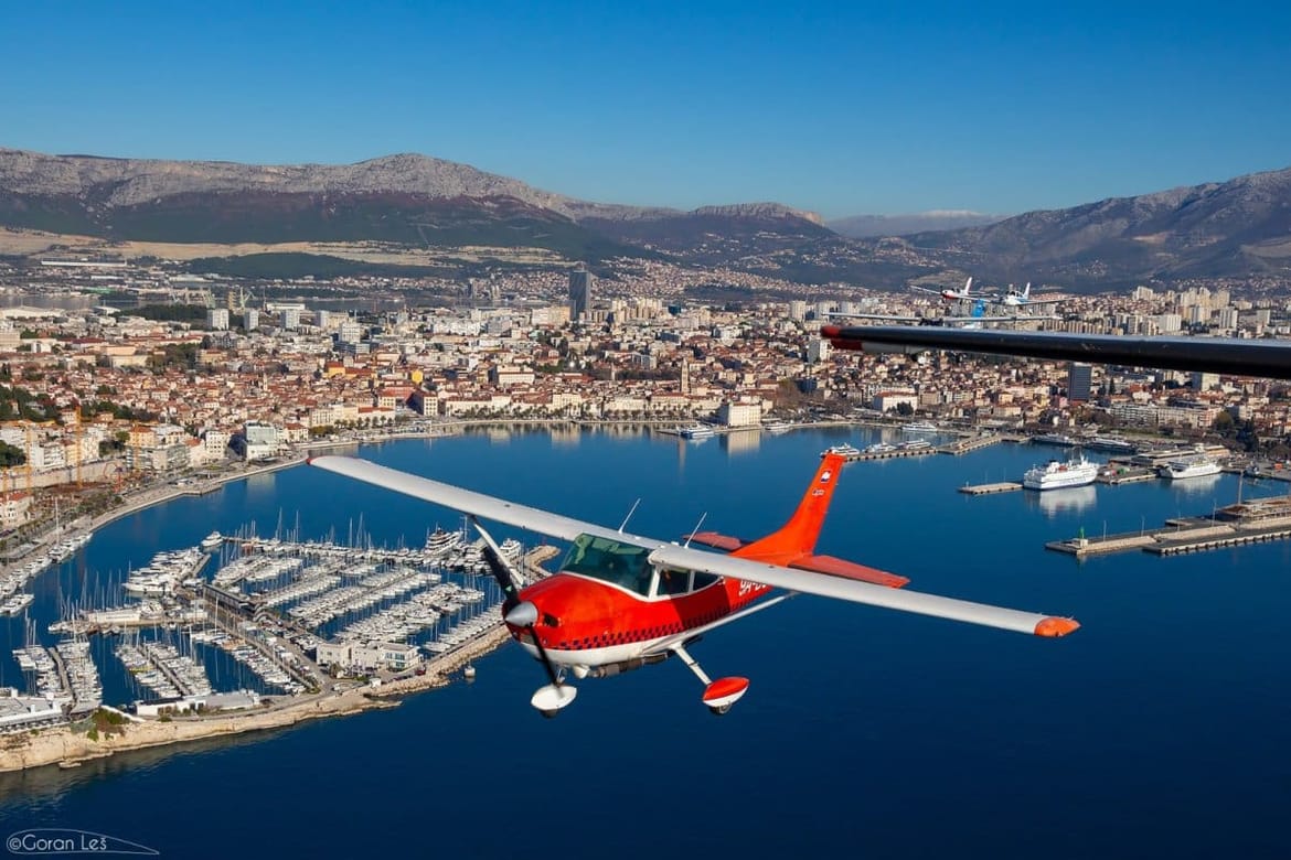Piloti Split Aira sa dva aviona, ST Aviation s jednim, Aeroklub Sinj sa dva i Aeroklub Split s jednim avionom u formaciji poletjeli su sa Sinjskog aerodroma Piket.