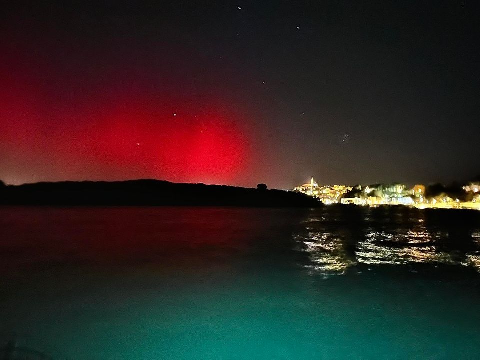 Ova zapanjujuća fotografija prikazuje rijedak i intenzivan prikaz aurore borealis (polarne svjetlosti) kako pleše iznad užurbanih noćnih gradova Europe, snimljena u 22.02 sati po lokalnom vremenu, s jedinstvene točke gledišta Međunarodne svemirske postaje (ISS).