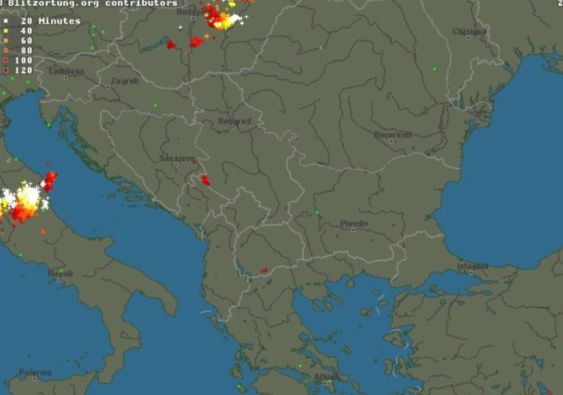 U večernjim satima nigdje na Jadranu nije zabilježena grmljavina, a prema sustavu detekcije munja Blitzorgnung, najbliže grmljavinsko nevrijeme je u talijanskog regiji Abruzzo, s druge strane Jadrana.