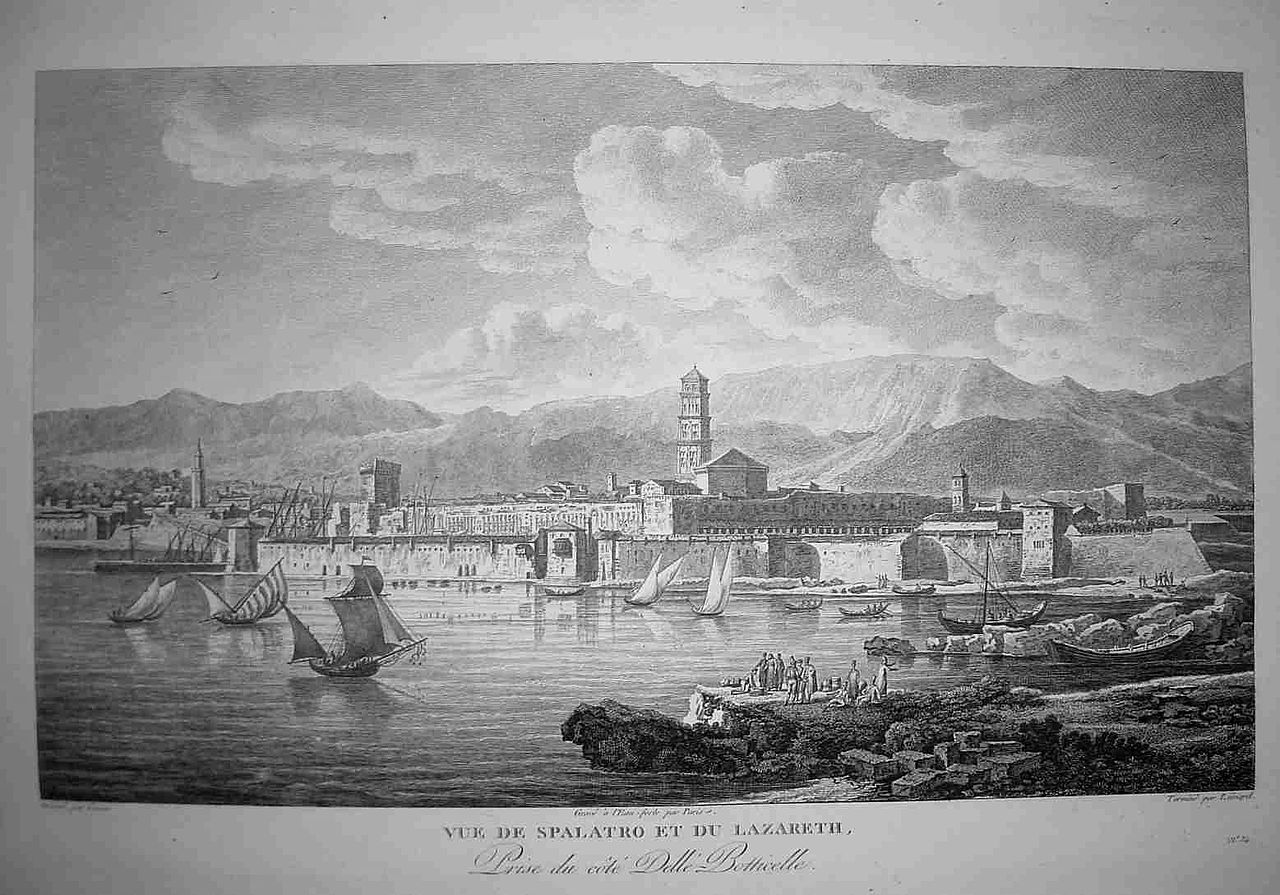 Pogled na Split i lazaret, iz djela Voyage pittoresque de l'Istrie et de la Dalmatie, Louis Francois Cassas, Joseph Lavallée (Fototeka MGS). Foto: Muzej grada Splita