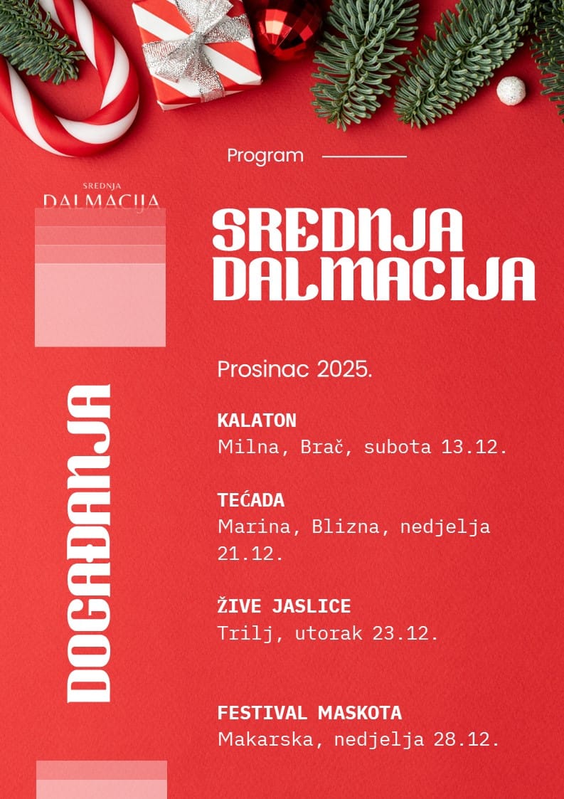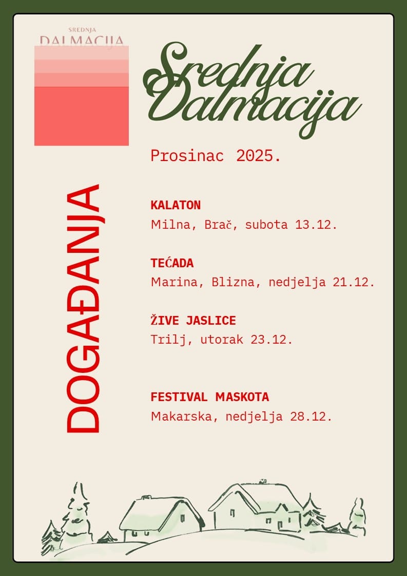 Turistička zajednica Splitsko - dalmatinske županije, u suradnji s lokalnim turističkim zajednicama, prikupila je popis aktualnih adventskih događanja koja se održavaju diljem županije. Cjeloviti pregled moguće je pronaći na službenoj web stranici Turističke zajednice, www.dalmatia.hr, u novoj rubrici Događanja koja se ažurira svaki mjesec i omogućuje jednostavno praćenje svih događanja.