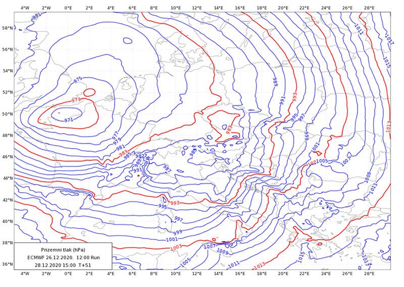 Mi ćemo utjecaj Belle početi osjećati već danas, u nedjelju, 27. 12. jer će tlak zraka naglo padati, za čak 30 hPa u toku jednog i pol dana! Stoga se oboružajte strpljenjem budući da će mnogi biti razdražljivi. No, to nisu najveći problemi koji nas očekuju.