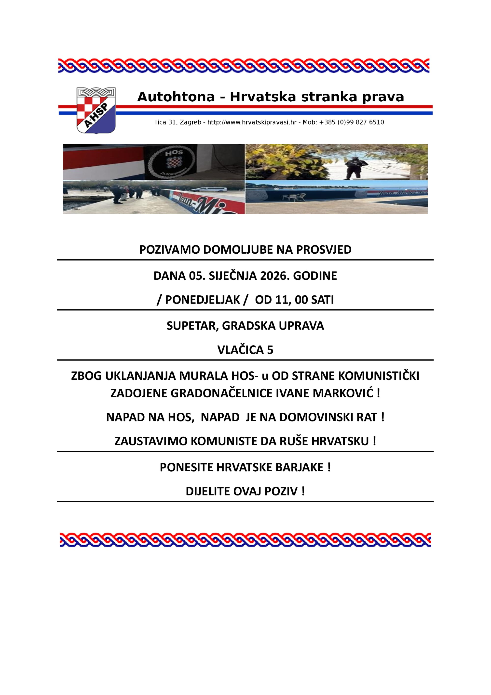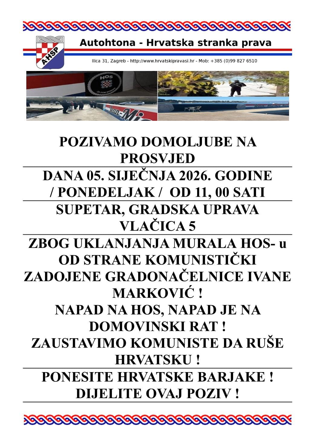 Zbog uklanjanja murala HOS – u od strane komunistički zadojene gradonačelnice Ivane Marković.