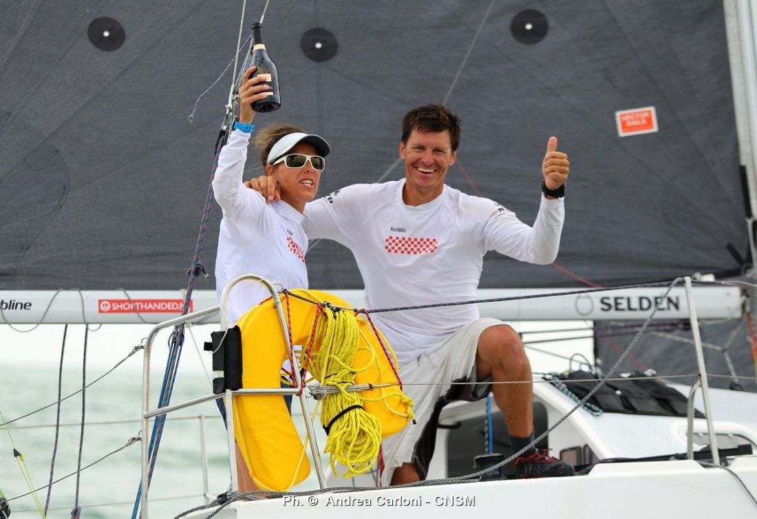 Vjetar je prvo dignuo na 25 pa na 30. Ja sam opet promijenio genovu za mali flok, a glavno na 2. kratu. Vjetar i valovito more nas neprestano guraju prema Istri jer teško držimo i smjer i brzinu. Kada smo htjeli virati uz obalu Istre da bismo se vratili prema Cresu, uspjeli smo tek iz trećeg pokušaja jer nismo imali dovoljno brzine! Kasnije, kada smo gladali analizu trackera poslije regate, vidjeli smo kako je loše izgledala naša linija kretanja u kanalu i koliko smo bili nošeni postrance, iako smo stalno jedrili štretu orcu. Na izlasku iz kanala vjetar je puhao 35 čvorova, najviše sam vidio 37 na instrumentima. Tijekom jednog manevra, Petra je skliznula s kormilarke pozicije i pala, natukavši rebra, pa sam je preuzeo kormilarsku poziciju. Oboje smo bili vezani u kokpitu cijelo vrijeme.