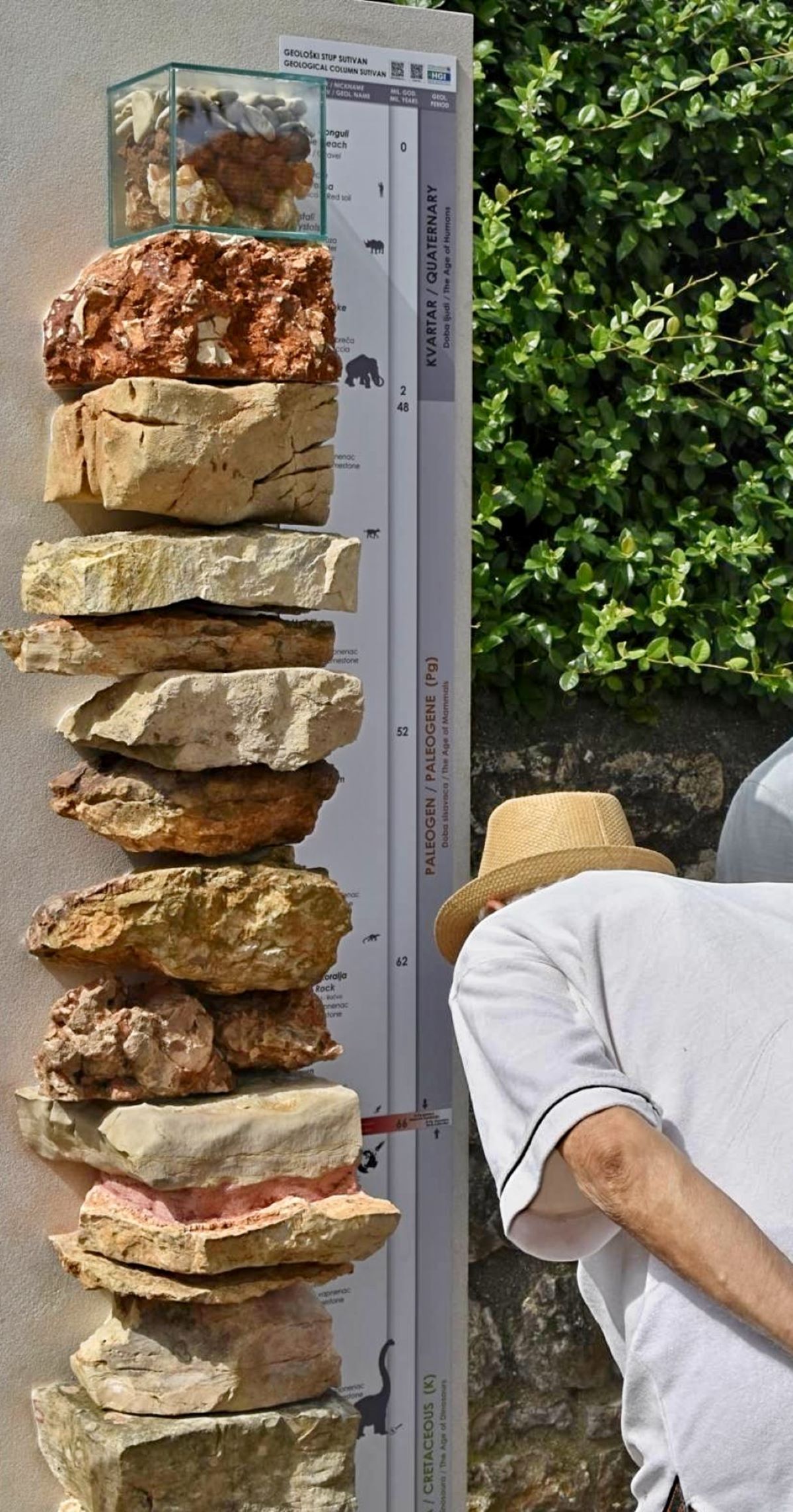 Općina Sutivan već godinama usko surađuje s Hrvatskim geološkim institutom na realizaciji projekta poučne geološke staze koje je ovaj stup sastavni dio. Postavljen u centru mjesta, na atraktivnoj šetnici između općinske zgrade i rive, geološki stup Sutivan poziva prolaznike i znatiželjnike na otkrivanje i upoznavanje geološke prošlosti otoka Brača kao i nevjerojatne priče o velikom izumiranju na planetu Zemlji prije 66 milijuna godina.