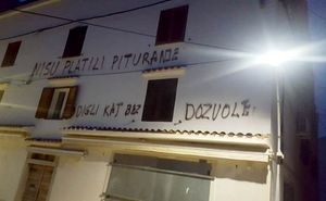 BAŠKA – Jedna kuća u Baški na otoku Krku, dobila je veliki grafit na fasadi. Fotografija se vrlo brzo proširila društvenim