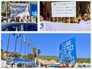 Prosvjednici su ispunili pola Rive i pola Marmontove, Prokurative su prazne. Prema slobodnoj procjeni, na prosvjedu je nekoliko tisuća ljudi.