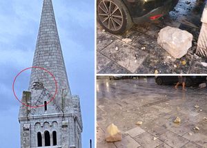 SELCA – Jako grmljavinsko nevrijeme u noći sa subote na nedjelju pogodilo je otok Brač. Udar groma pritom je oštetio zvonik