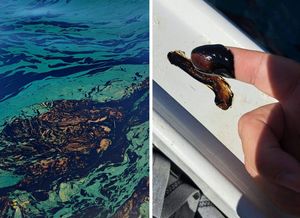 Mještani Vranjica šalju nam fotografije zagađenja mora u Kaštelanskom zaljevu. Netko je, naime, u more izlio mazut i velika mrlja