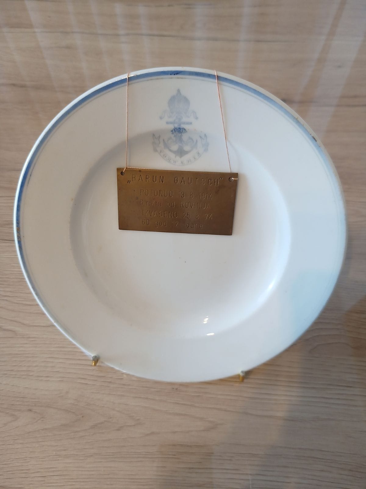 Nevelika malakološka zbirka mog djeda, danas u vlasništvu rođaka Krune, prikupljena je sa svih strana svijeta. Od nalaza lokalnih ribara, preko koralja koje je moj otac izronio u Crvenom moru (i odbio ih na plaži prodati onima koji su ih željeli, ali su se plašili morskih pasa), do suvenira kupljenih tko zna gdje. Kao djetetu najzanimljivije mi je bilo kao lakat veliko Petrovo uho, latinski Oče naš i Zdravo Marija izrezbaren na nevjerojatno tankom sedefu. I jedan tanjur. Posuđu obično nije mjesto u takvim zbirkama, no ovaj je tanjur pripadao restoranu parobroda SS Baron Gautsch koji je potonuo 6 milja od Rovinja.