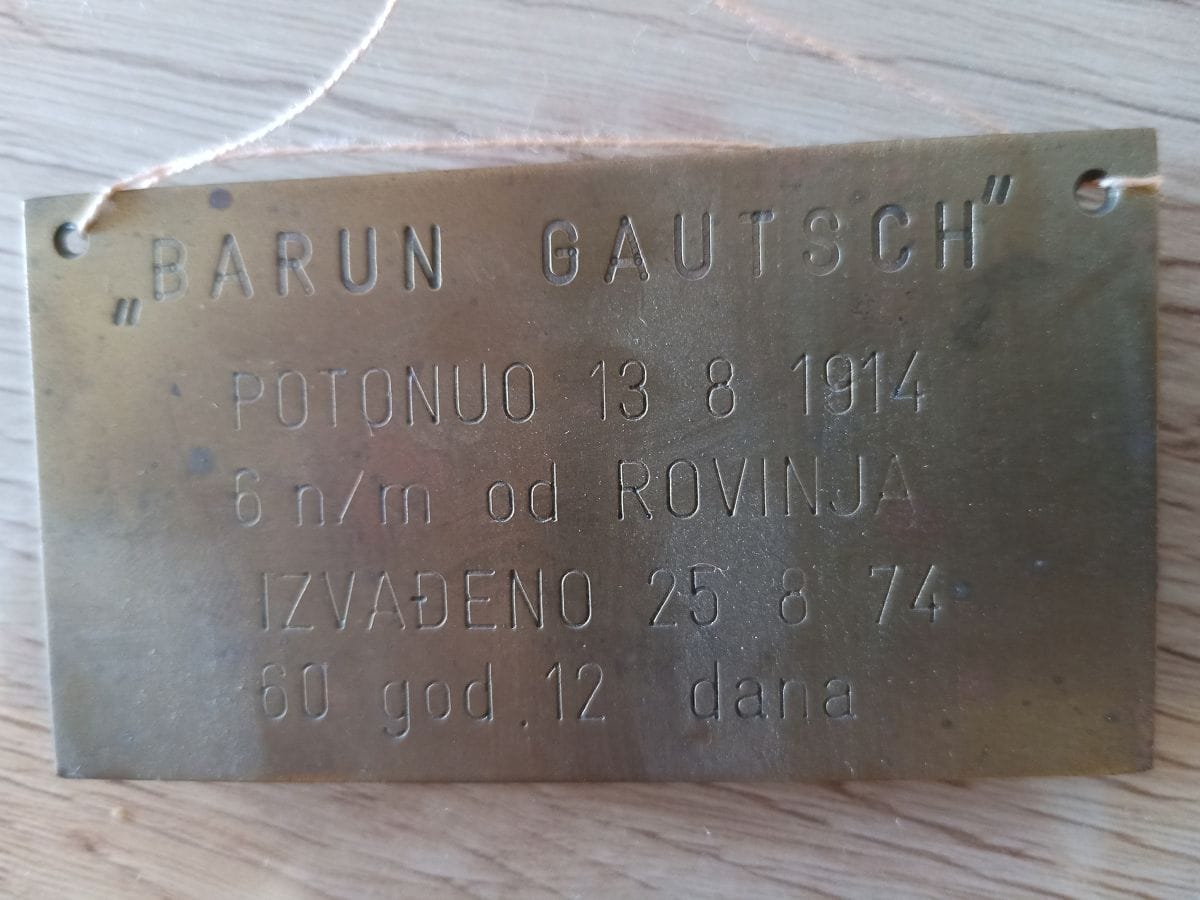No, je li uopćen dozvoljeno imati kod kuće takav artefakt? Odgovor nije sasvim jednostavan. Zakoni kažu da je sasvim legalno posjedovati bilo što izvađeno iz mora prije 1945. godine pa bio to i najvredniji i znanstveno najzanimljiviji nalaz. Ovdje to nije slučaj. Na pločici uz tanjur stoji da je izvađen 1974. godine. U takvom slučaju nalaz bi trebalo prijaviti Ministarstvu kulture koje bi ovakav tanjur, kakav već postoji u muzejima, bez problema upisalo u registar i ostavilo slučajnom nalazniku. To, naravno, ne znači da je dozvoljeno roniti i vaditi što vam padne na pamet, Gautsch i područje oko njega su djelomično zaštićeni i dozvoljeno je samo turističko ronjenje pod vodstvom lokalnog kluba koji ima koncesiju.