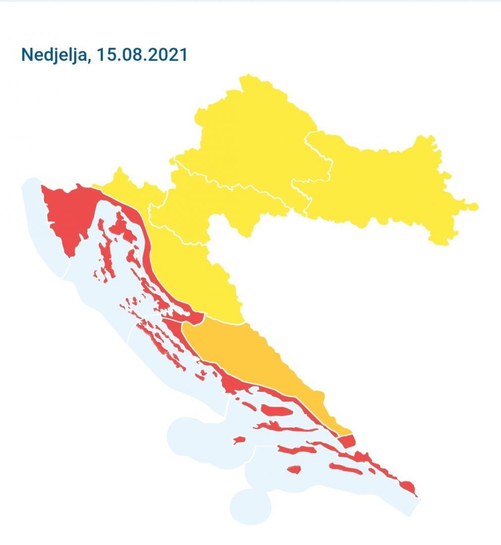 Za cijeli Jadran i danas je upaljen crveni meteoalarm, a prema podacima Državnog hidrometeorološkog zavoda, najgore će biti u riječkoj, splitskoj i dubrovačkoj regiji, gdje se dnevna temperatura neće spuštati ispod 35 stupnjeva Celzijevih.