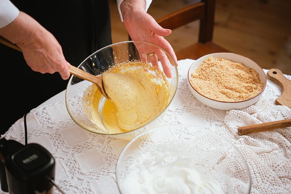 Vodnjanke su se morale naoružati s velikom količinom strpljenja, ali i imati snažne ruke jer su se bjelanjci za snijeg tukli ručno, vilicom i vrlo sporo što je moglo potrajati i do dva sata jer se u protivnom torta ne bi digla. No, sav trud bi nagrađen jednostavnom, a bogatom aromom torte koja bi svaki put izmamila uzdahe zadovoljstva svih okupljenih oko svečanog stola, ali i ponosni osmijeh umorne domaćice. Tako je Torta de mandole postajala omiljeni desert svih generacija.