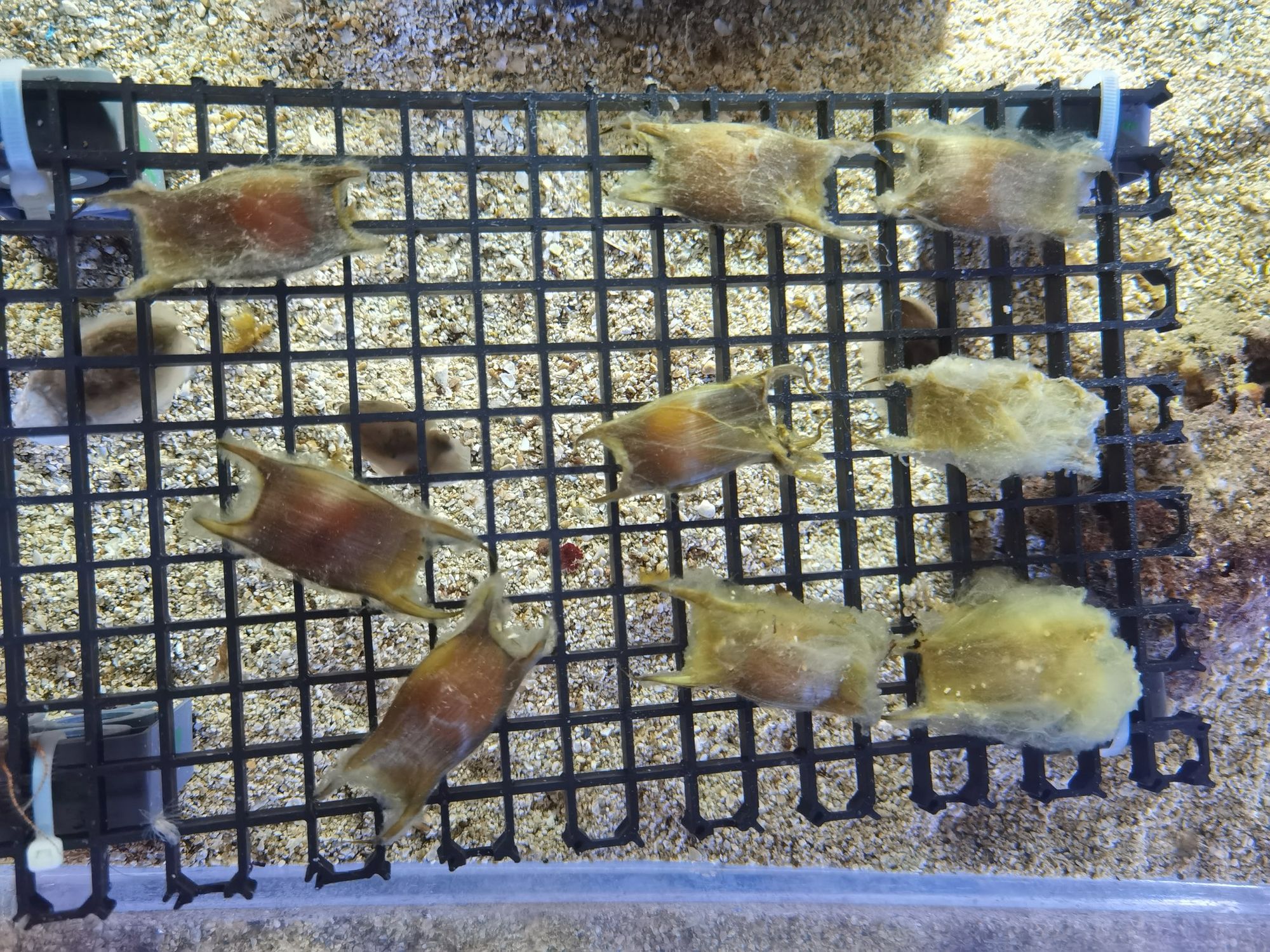 PULA - Ekipa iz Aquariuma Pula izvjestila je da su po prvi puta u svome akvariju, od kolovoza pa sve do danas u jadranskom postavu, prikupili čak devet rožnatih jajnih čahura koje pripadaju raži modropjegi (Raja miraletus). Embrij je za sada vidljiv samo u 3 jajne čahure.
