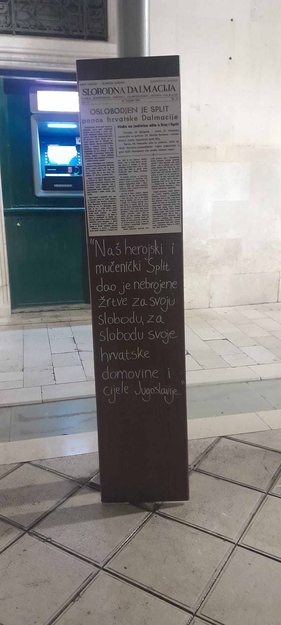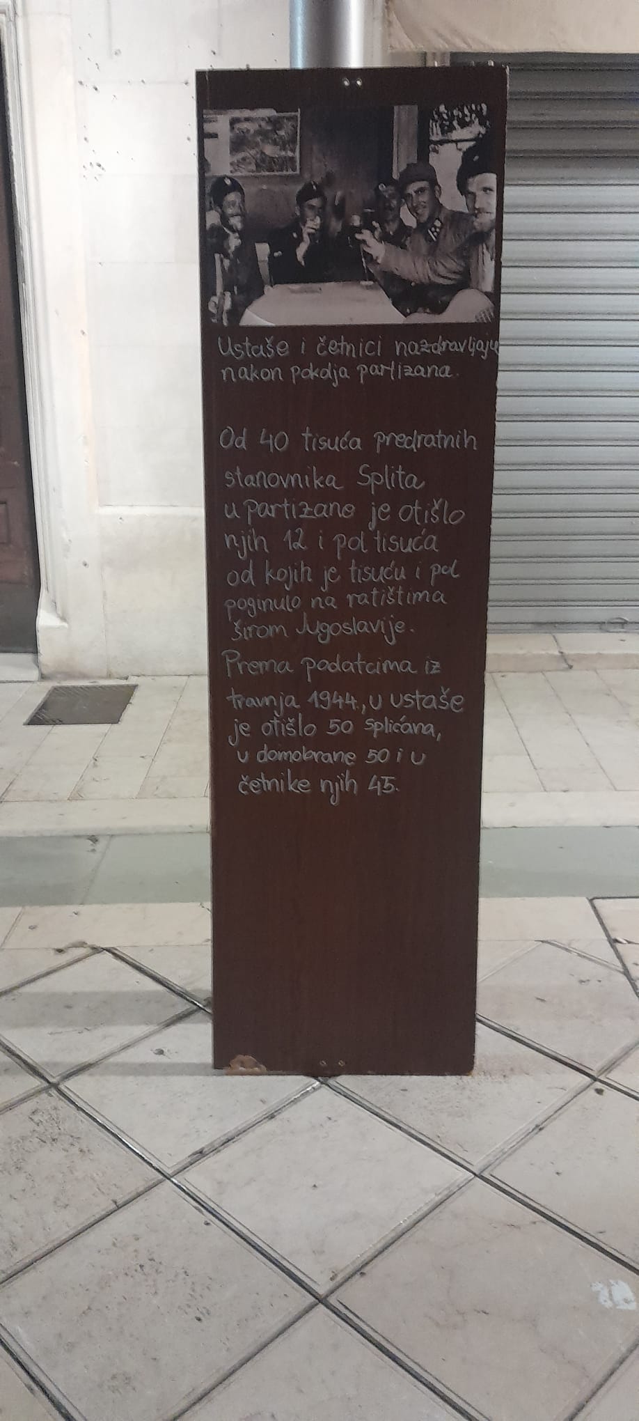 SPLIT - U centru Splita izloženi su edukativni radovi i arhivske fotografije kojima su mladi Splita utvrdili povijesne činjenice, te ovom intervencijom u javnom prostoru skrenuli pažnju na važnost suprotstavljanja mržnji prema manjinama i drugačijima, kao i nedvosmislenog odbacivanja fašizma.