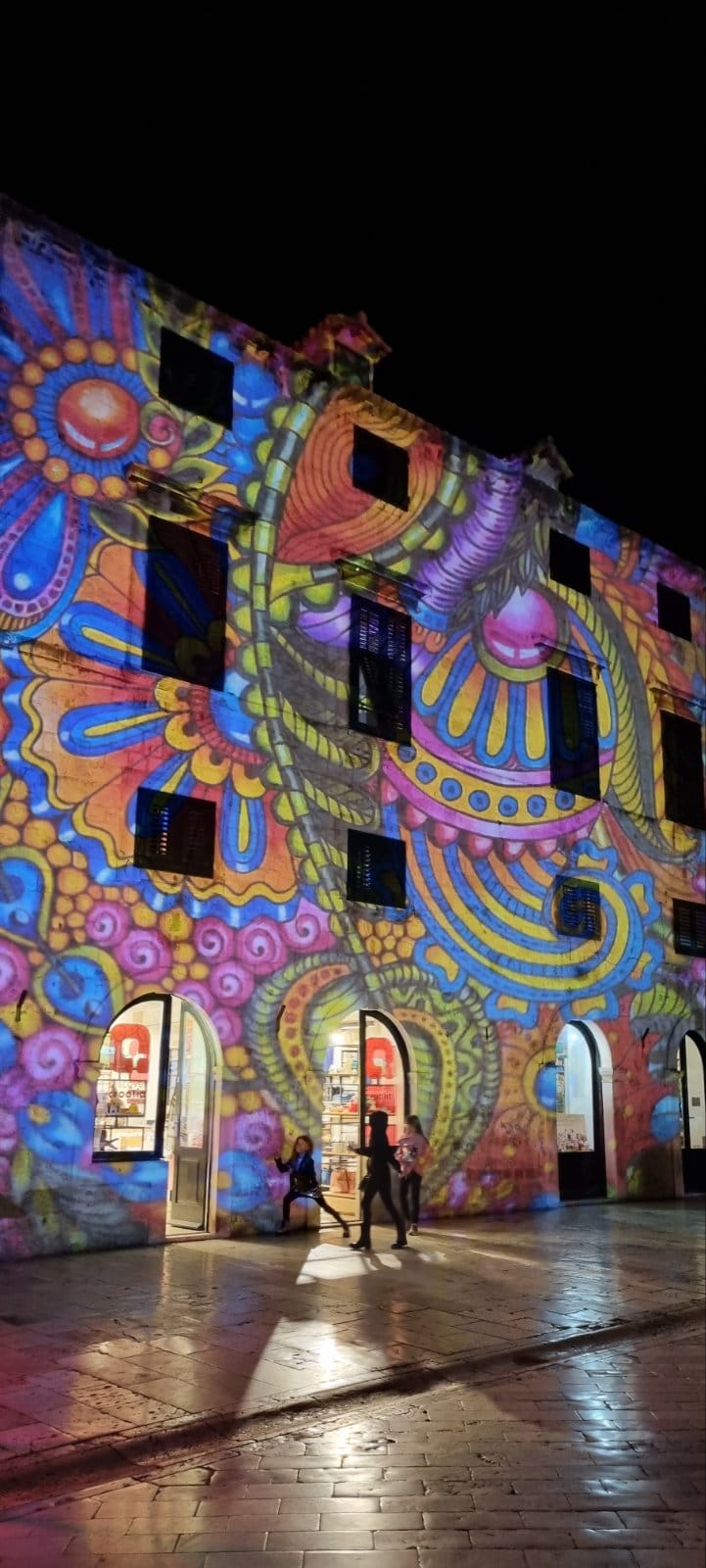 Šaroliko, veselo, inspirativno i drukčije bilo je u gradu večeras, a predstoje još dva dana svjetlosne čarolije. Iz bogatog programa izdvajamo live performance „Audio-visual journey by Pixel design & Cobblestone echoes“ koji će se održati u subotu, 4. studenog s početkom u 21:30 sati na palači Sponza.