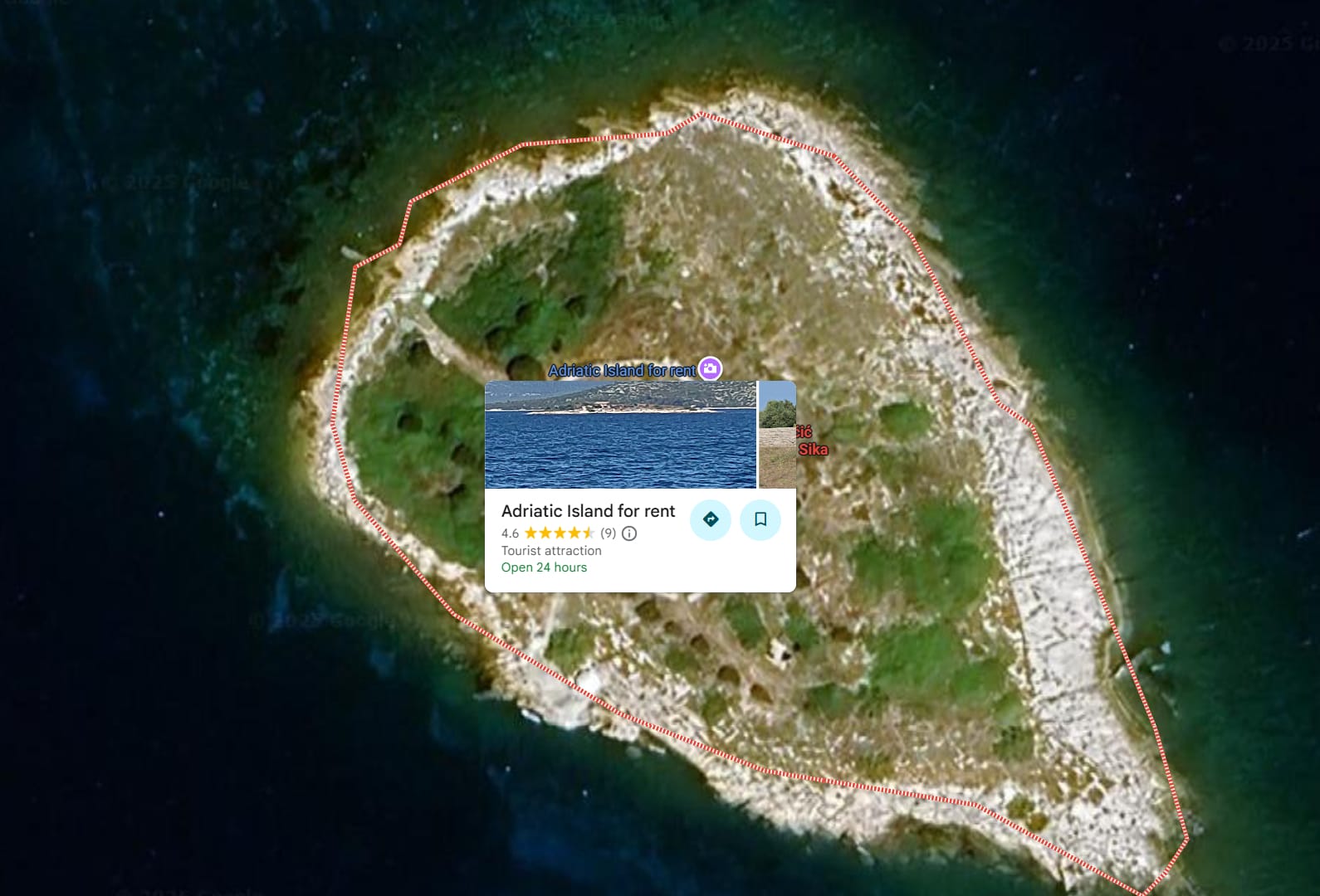 Da je tome nedvojbeno tako, jasno je i ako odete na Google Maps ili Google Earth. Otok Ravna Sika označen je kao "otok za najam".