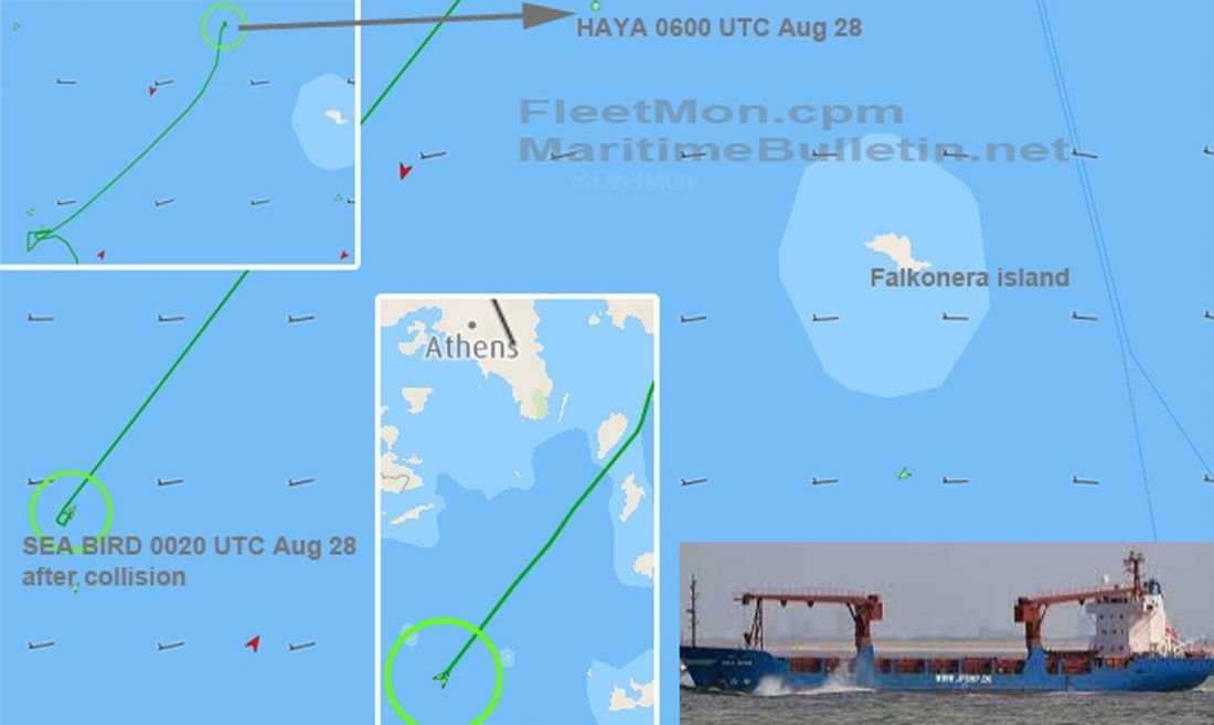 Brod Sea Bird navodno se sudario s drugim libanonskim teretnim brodom Haya, koji jutros od 6:20 pluta sjeverno od mjesta nesreće.