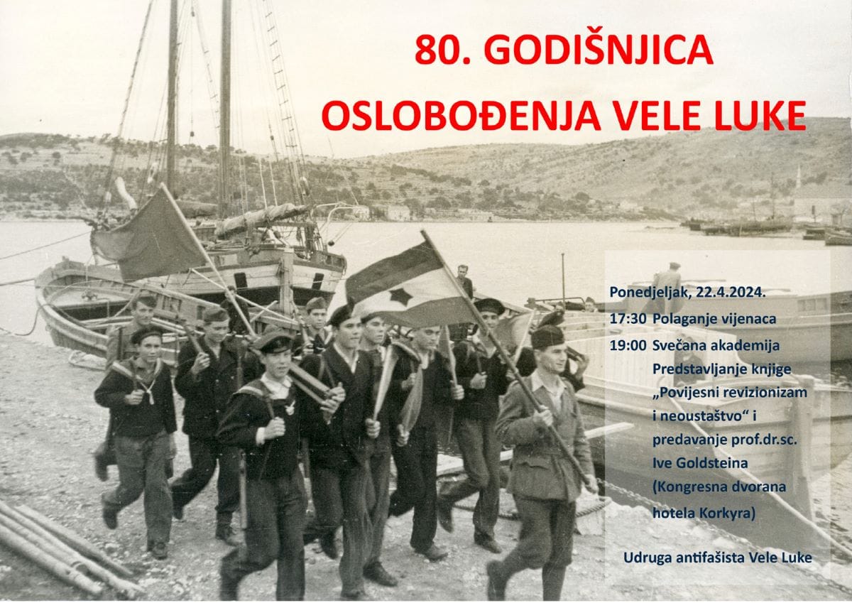 VELA LUKA - U ponedjeljak 22. travnja obilježit će se 80. godišnjica oslobođenja Vele Luke.