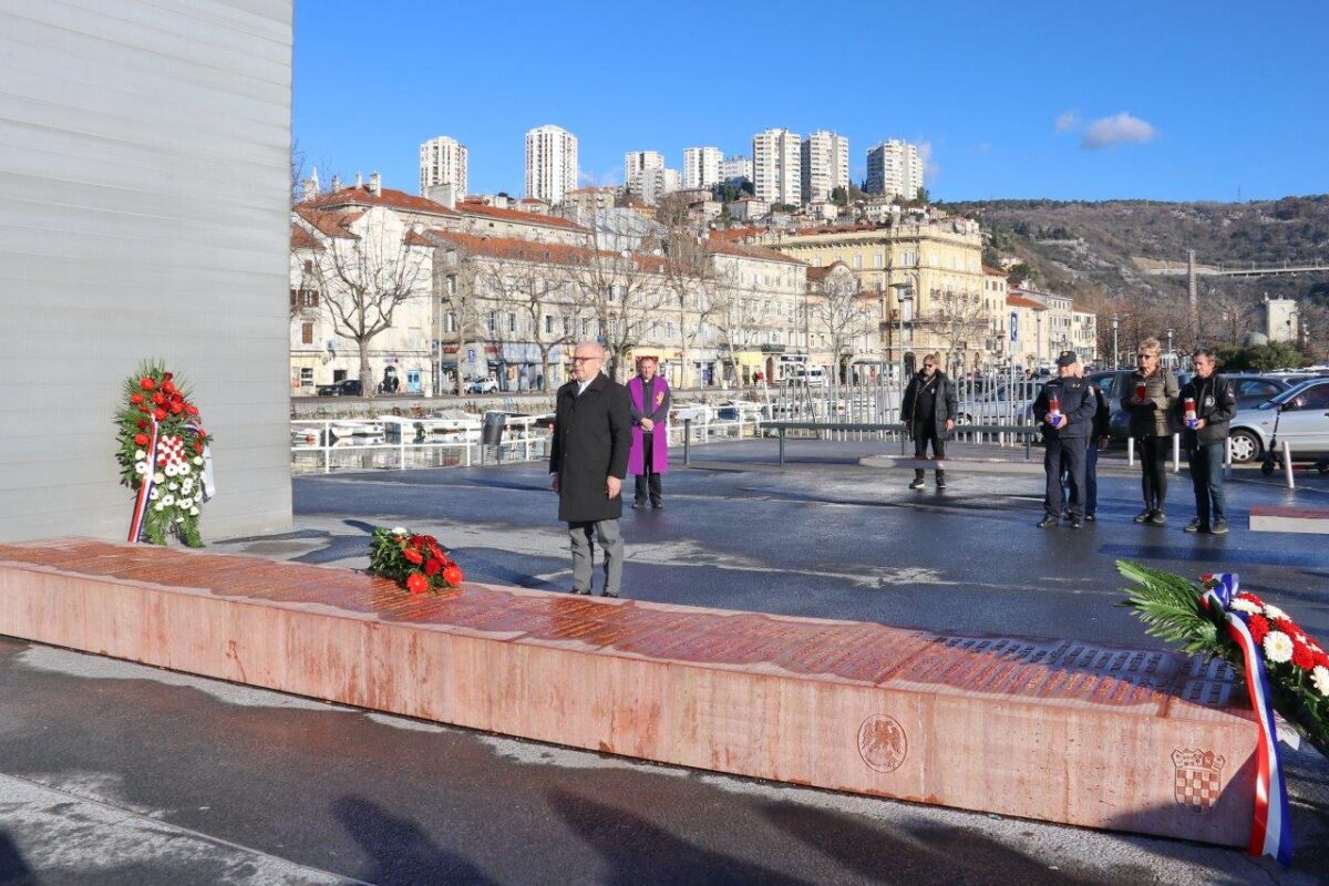 RIJEKA - Polaganjem vijenaca i paljenjem svijeća na Mostu hrvatskih branitelja na Delti obilježen je Dan međunarodnog priznavanja Republike Hrvatske.