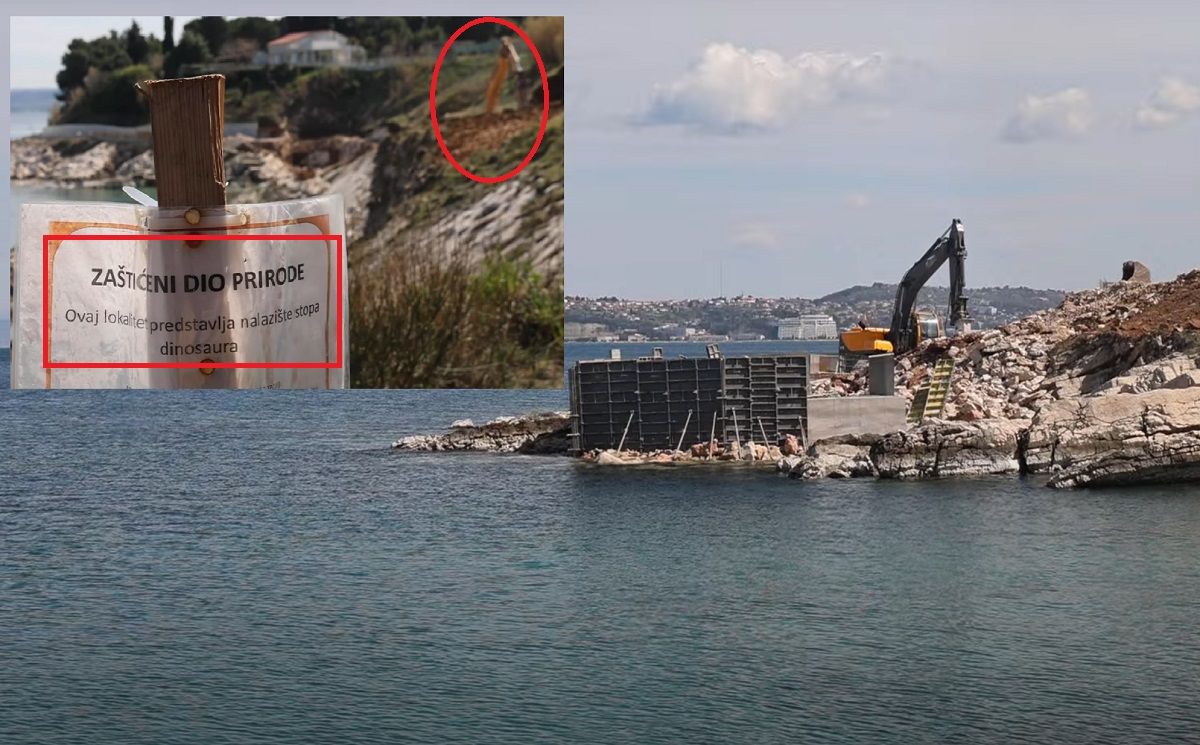 - Stope dinosaurusa su evidentirane prije gotovo 15 godina, no niti jedno nadležno tijelo nije nikada poduzelo radnje koje bi zaštitile spomenute stope ili samo bar obilježilo područje. Nadalje, pristup nalazištu je do početka realizacije šetnice bio „pod okupacijom“ zbog uzurpacije pomorskog dobra od strane stranih državljana, vlasnika čestica u zaleđini. Dakle, jasno je o kakvoj je nebrizi riječ svih onih koji se sad javljaju, kazao je o ovom slučaju u travnju za Istru24 umaški gradonačelnik Vili Bassanese, koji je ovaj prirodni spomenik, izgleda, odlučio "zaštititi", okivajući ga betonom i željezom.