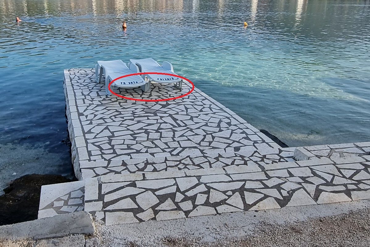 SEGET VRANJIC - Iz Seget Vranjica, točnije ispred objekta u ulici Obala Mira Barešića, stižu fotografije izbetonirane, pa potom popločane rive, za koju je prisvajatelj pomislio da je šteta podijeliti s drugima.