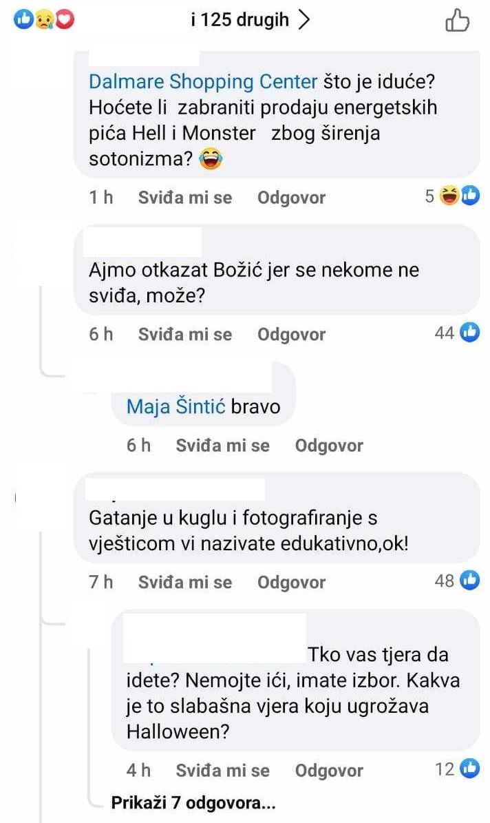Otkazivanje programa u povodu Noći vještica u Dalmare shoping centru pozdravila je i pohvalila Župa sv. Ante Padovanskog na Šubićevcu: Molitvom, iskrenim pristupom i raskrinkavanju zla uvijek Božja milost pronađe svoj put. O, Duše Sveti, zapali naša srca za još jačom vjerom.