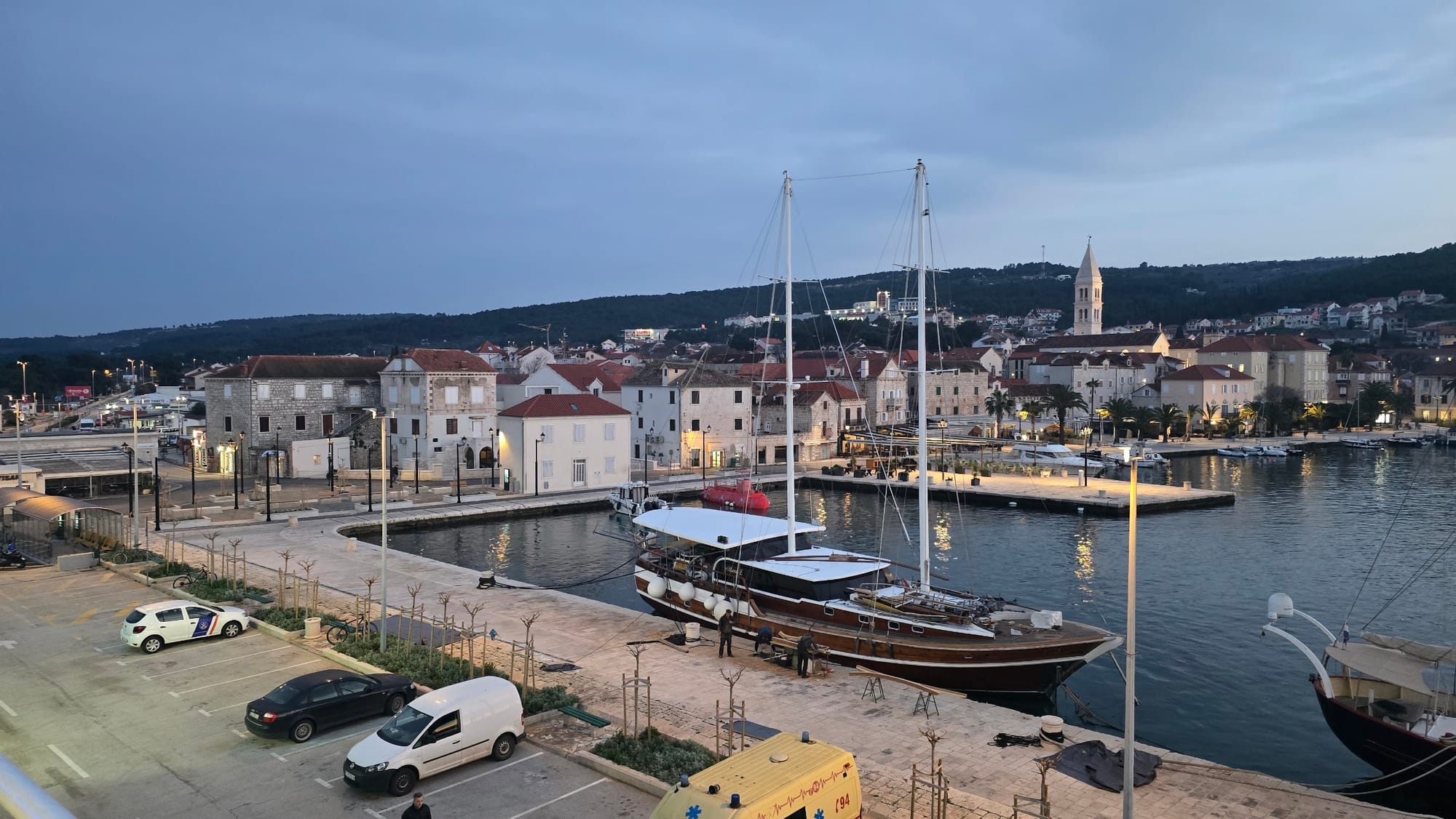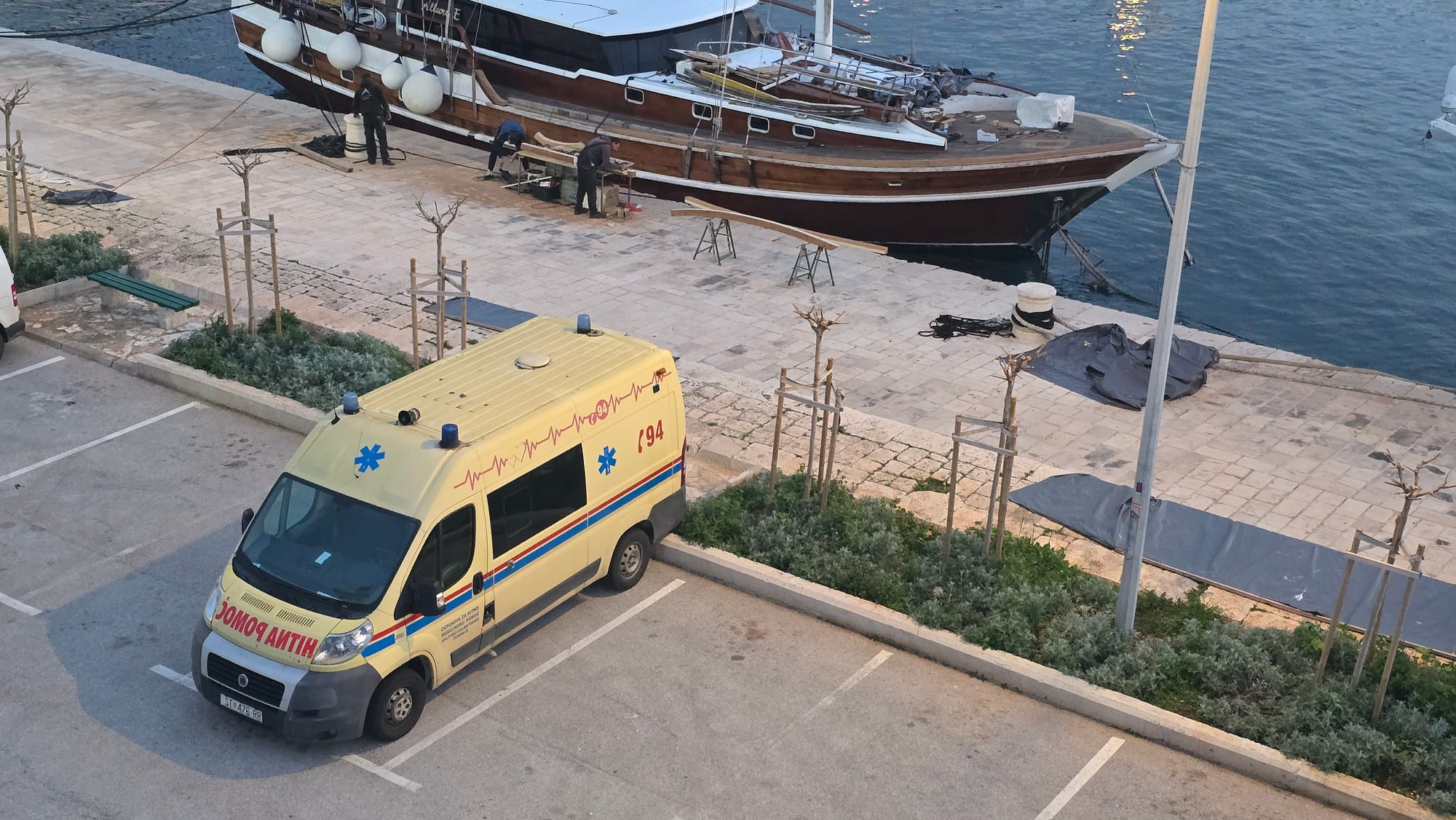 U luci Supetar zatekli smo tako gulet "Allure E" oko kojeg je nekoliko radnika brusilo, pilalo i radilo na brodskoj drvenariji. Nazvali smo zapovjednika da ga pitamo "kako to"?