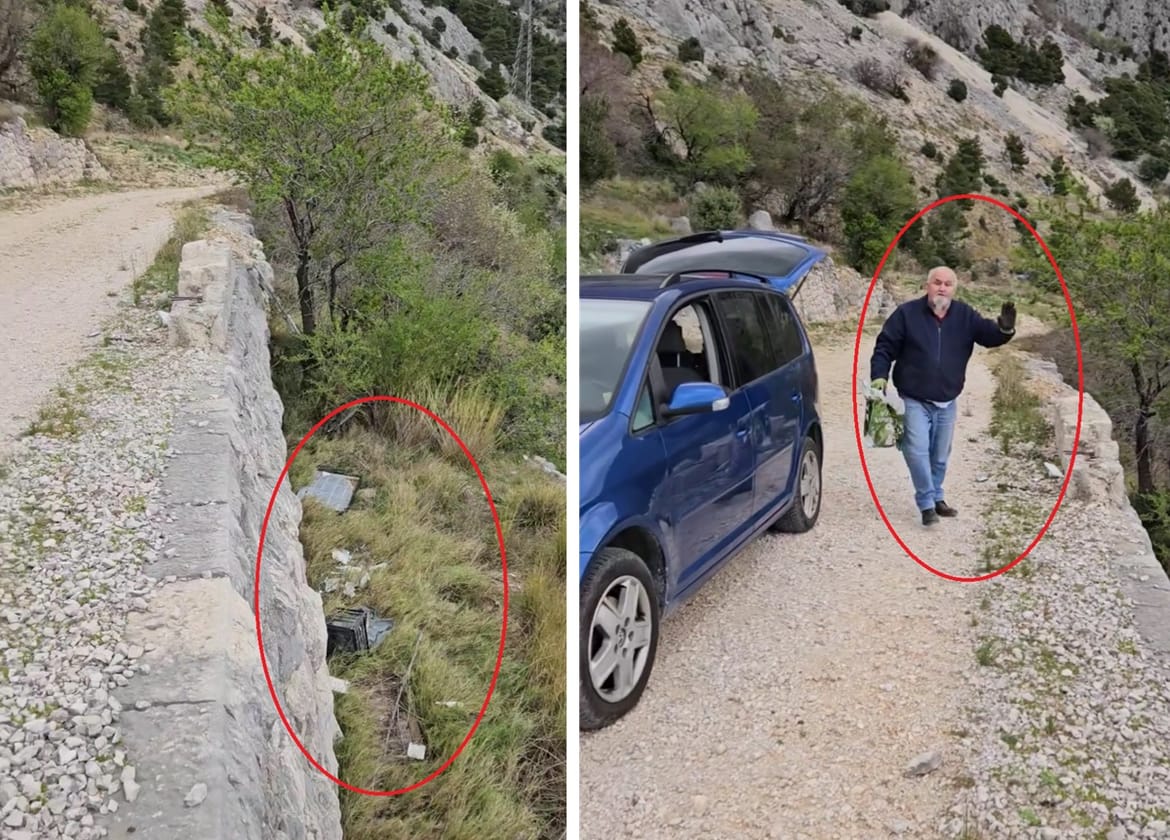 - Naš kolega prilikom jutarnjeg trčanja, naletija je na ovog "gospodina" kako bezbrižno u srid bila dana izbacuje smeće na staroj cesti iznad Klokuna. Natira ga je da pokupi sve šta je izbacija, a snimka registracije auta i njega samoga poslana je policiji i komunalnim redarima. Zaustavimo divlje bacanje smeća po prirodi! - piručili su.