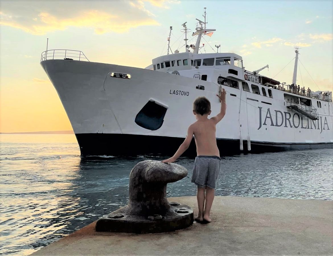 Podizanje “usta” “Lastova” ne ostavlja ravnodušnim ni odrasle, kamoli djecu! Otvorenih ustiju, užareniih dječjih očiju gledaju veličanstveno spuštanje rampe, jer brod u sebi donosi nove posjetitelje, hranu, vodu… Strpljivo čekaju da Stipe veže grdosiju.