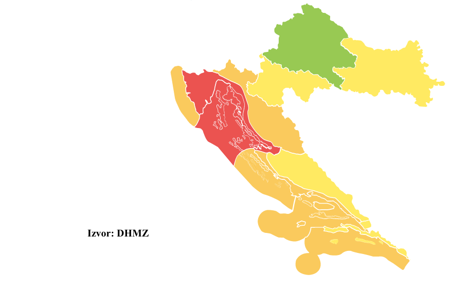 Prognostičari Državnog hidrometeorološkog zavoda izdali su za 26. prosinca 2020., crveno upozorenje za područje riječke regije, Kvarnera i Velebitskog kanala te narančasto upozorenje za područje gospićke regije, zapadne obale Istre i Dalmacije.