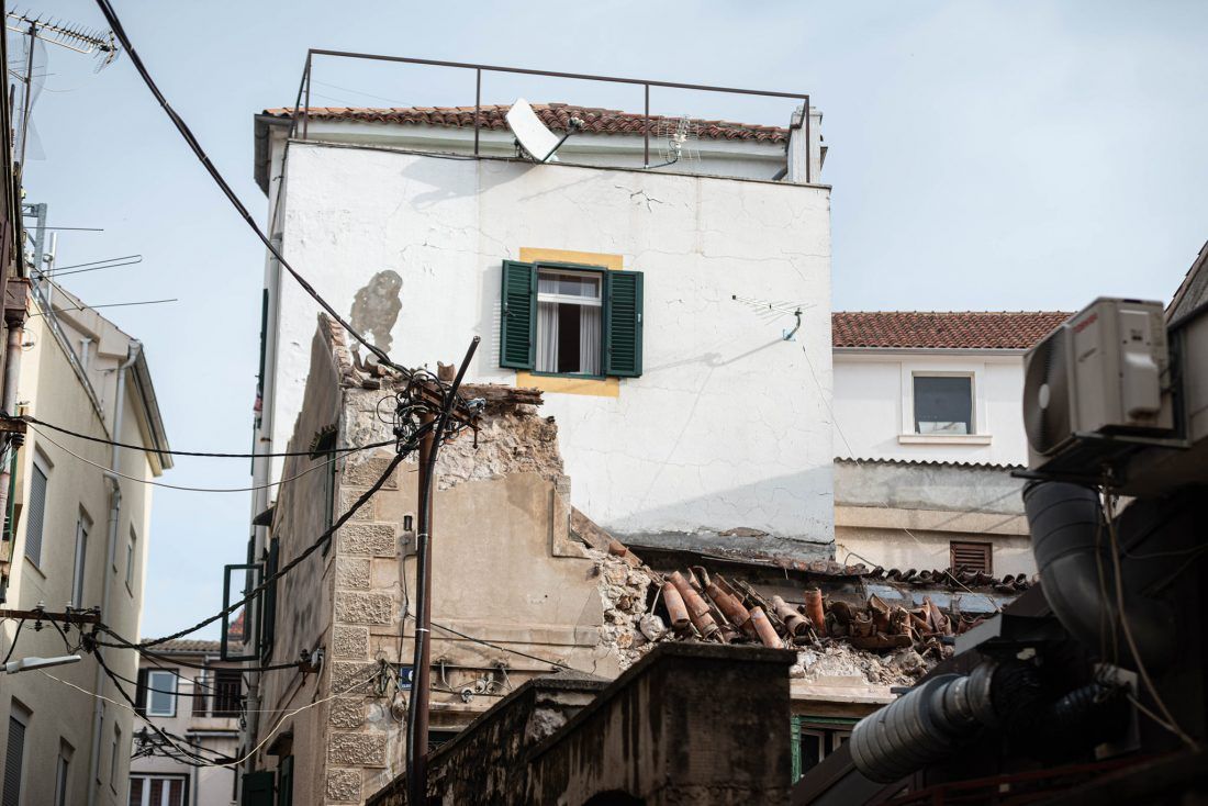 ŠIBENIK – U samom središtu Šibenika, u Ulici Blajburških žrtava jutros se urušio dio kuće, kazali su iz Županijskoj centra 112.