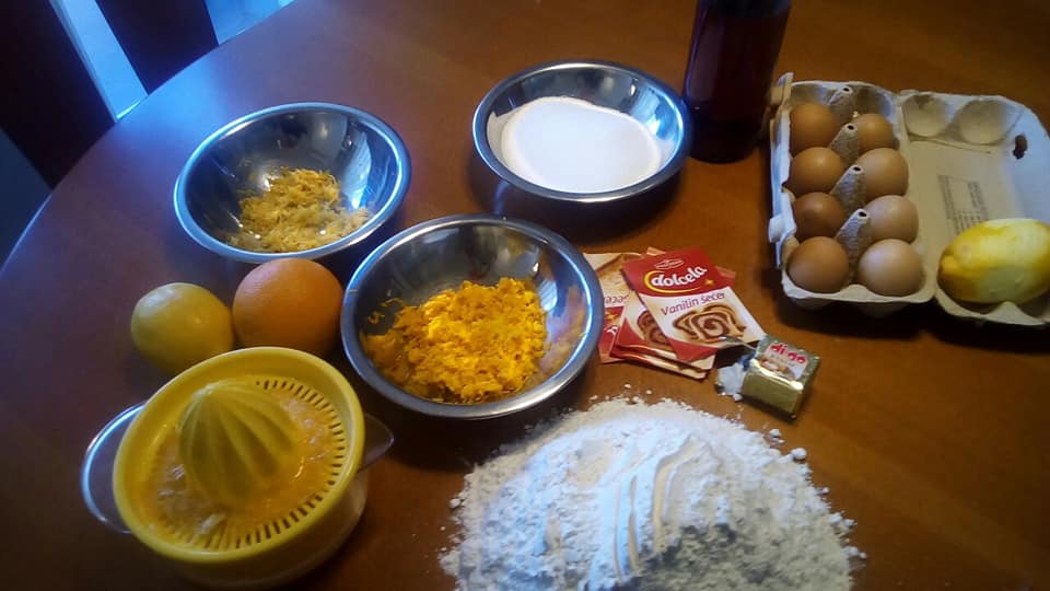 Prosijati brašno. U sredini napraviti rupicu u koju se stavi svih osam žumanjaka, 4 bjelanjka, šećer, rastopljena mast, sok i korica limuna i naranče, vanilin šećer i ružolj.